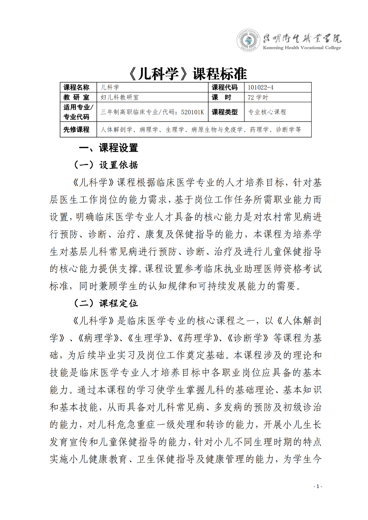 《儿科学》课程标准