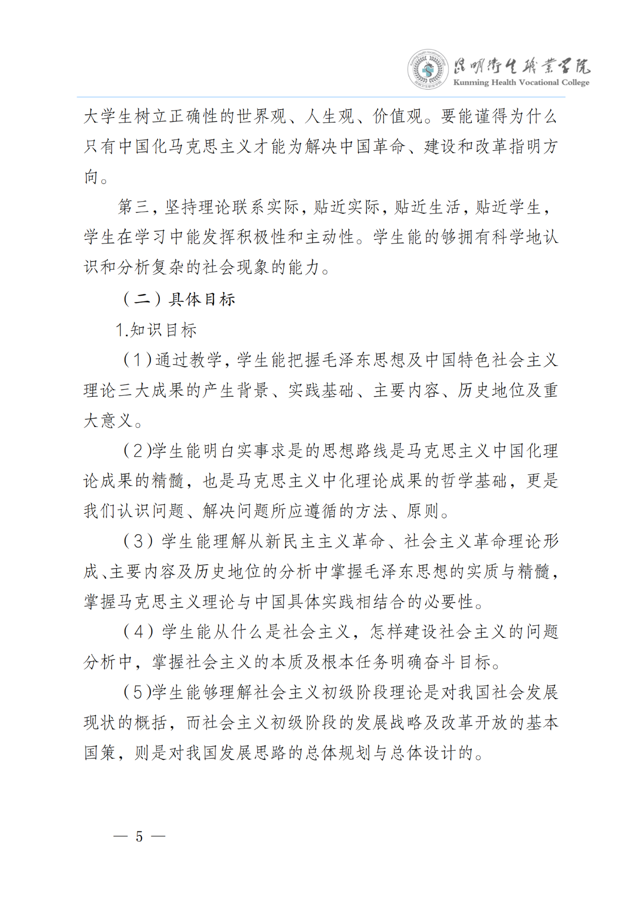 《毛泽东思想和中国特色社会主义理论体系概论》课程标准