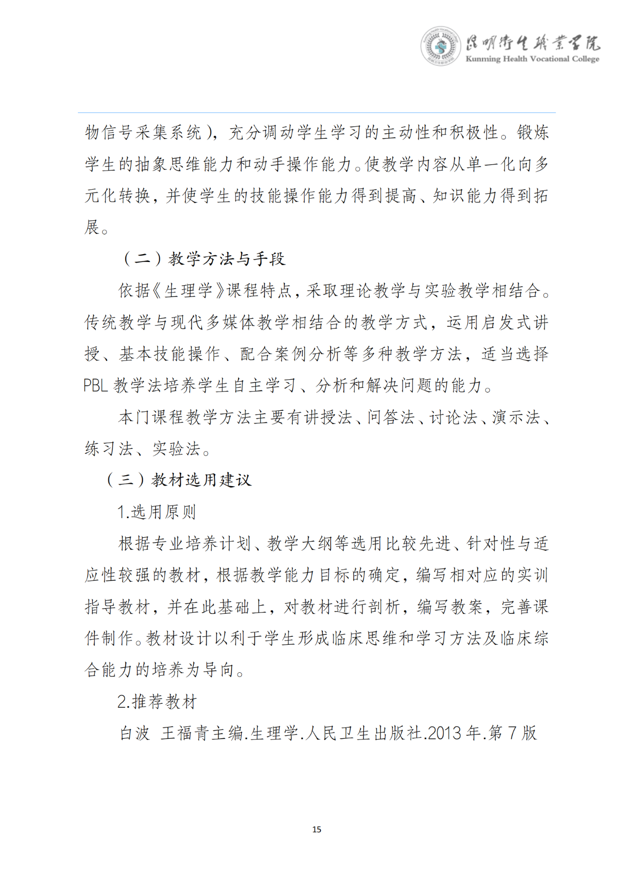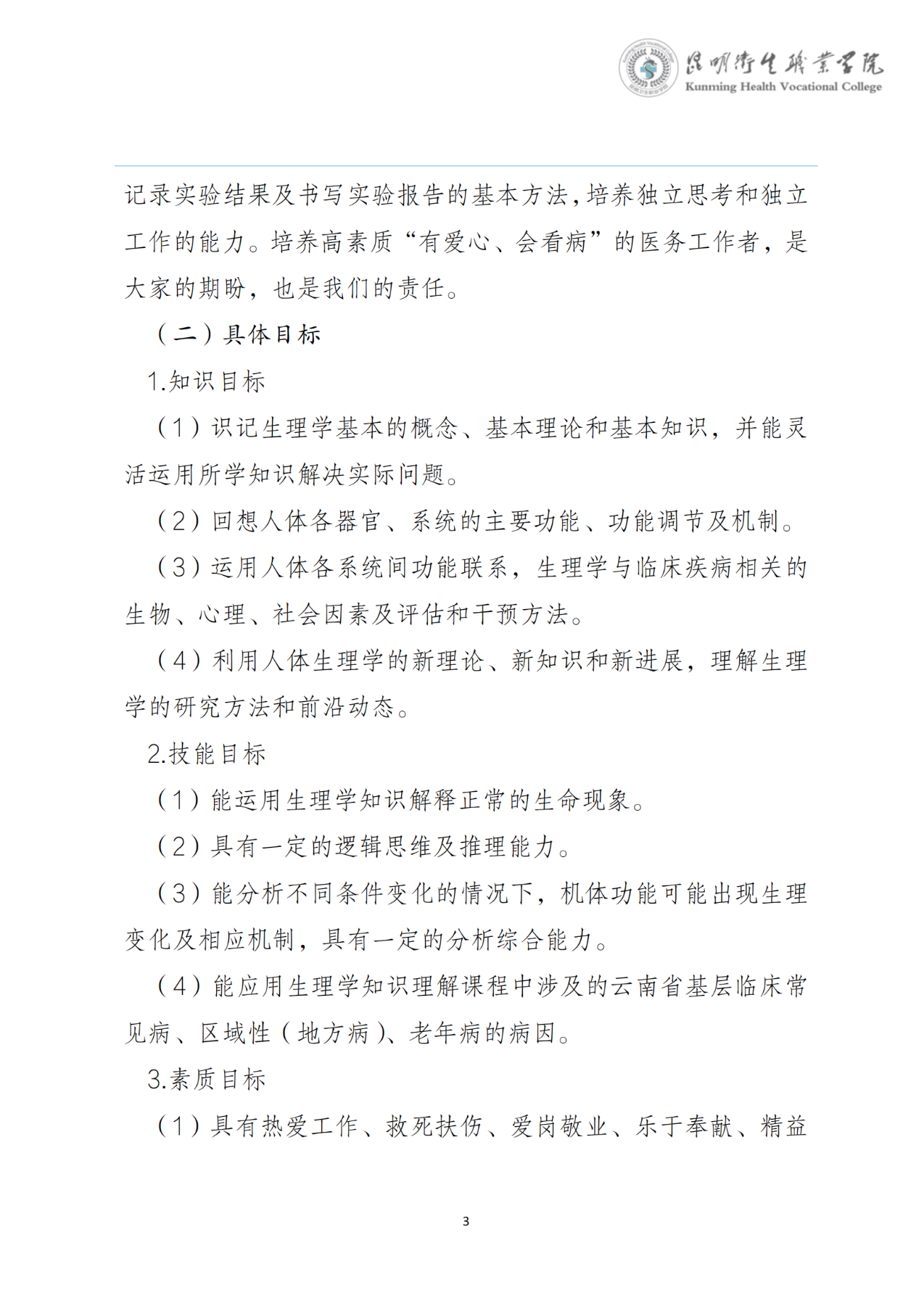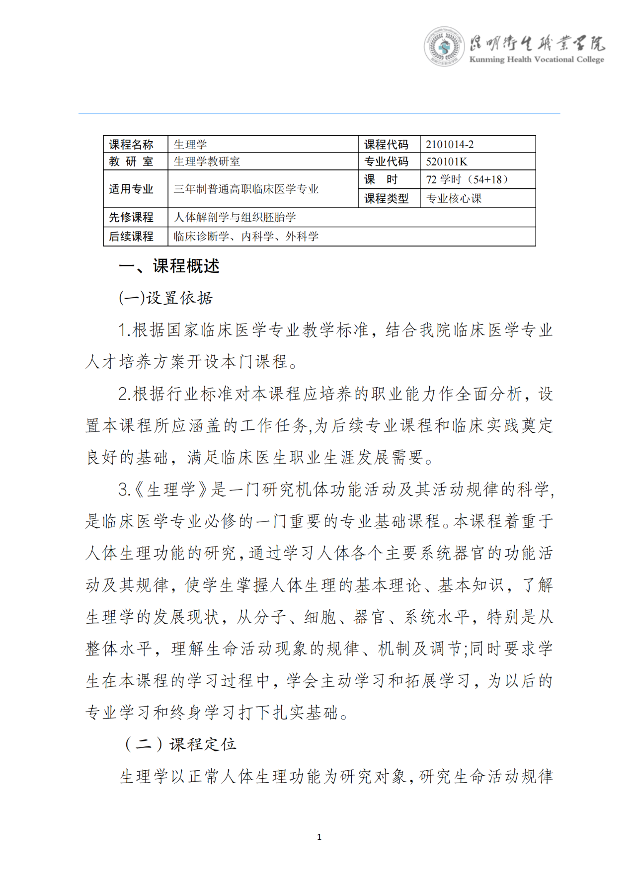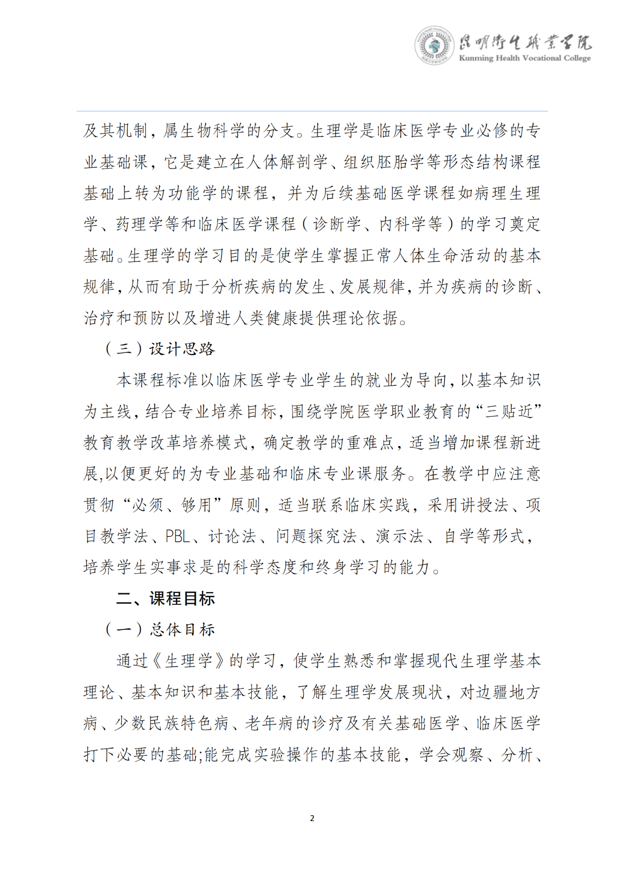 《生理学》课程标准