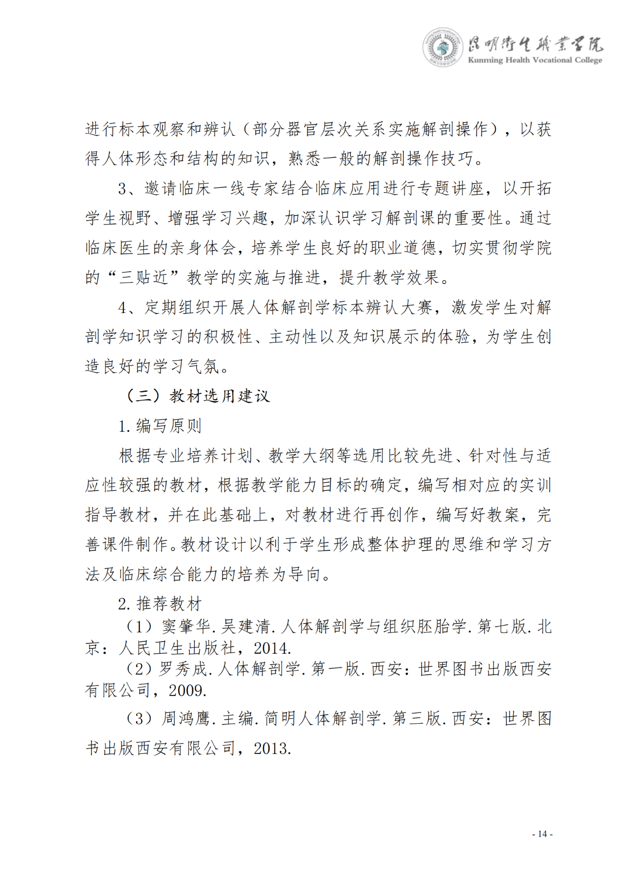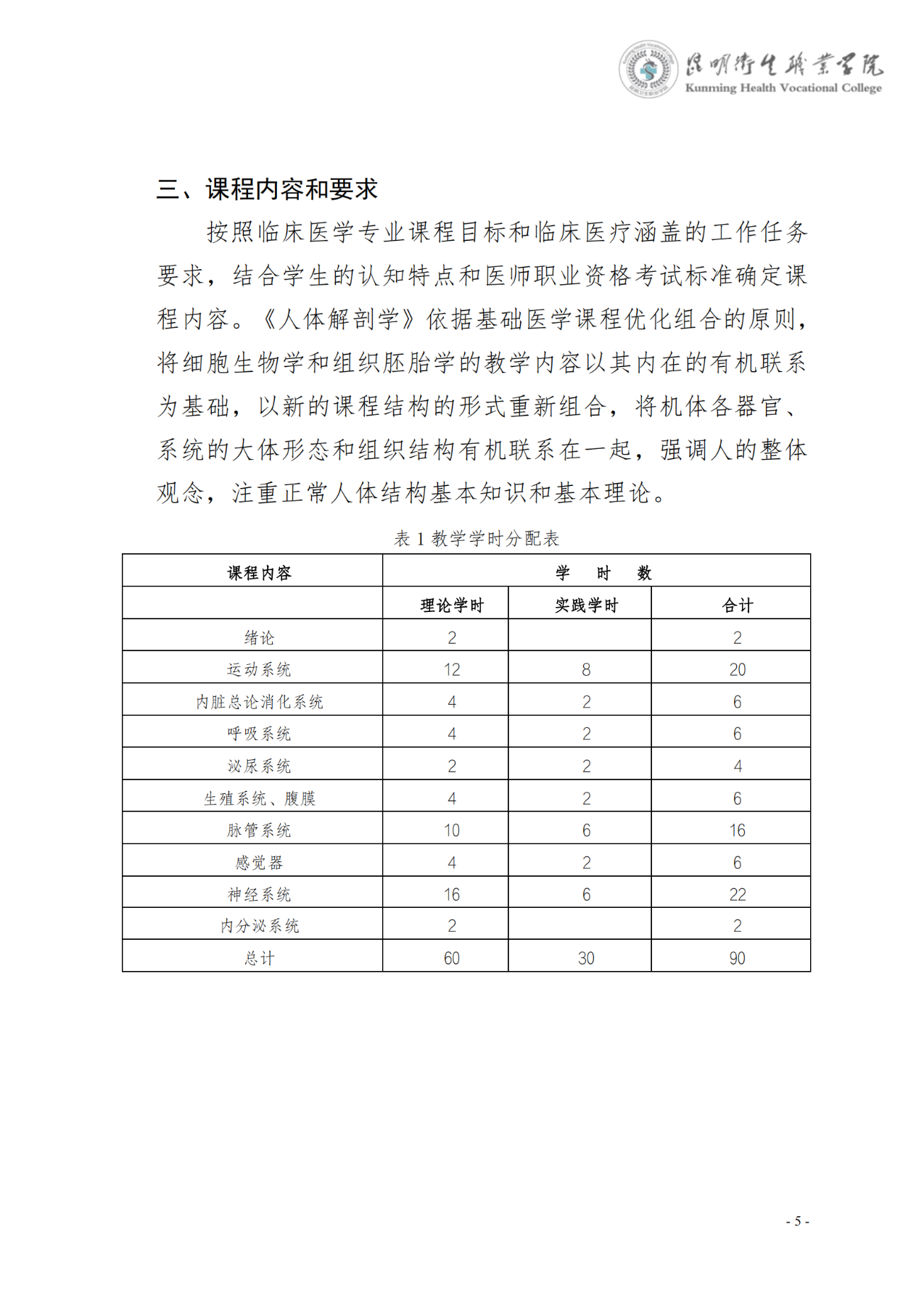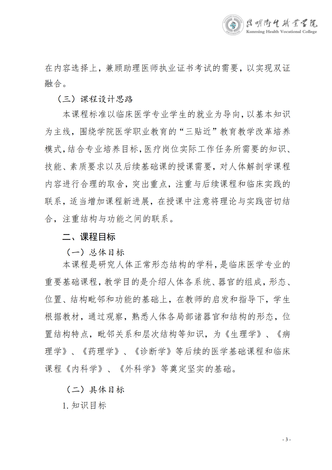 《人体解剖学》课程标准