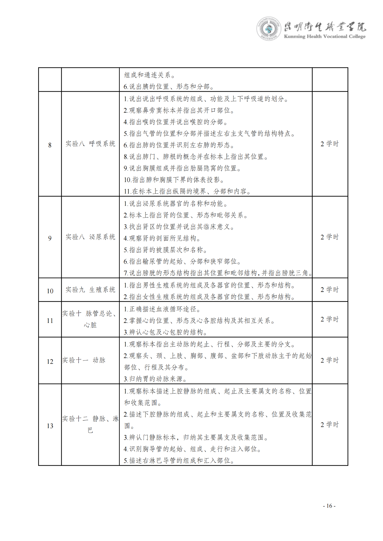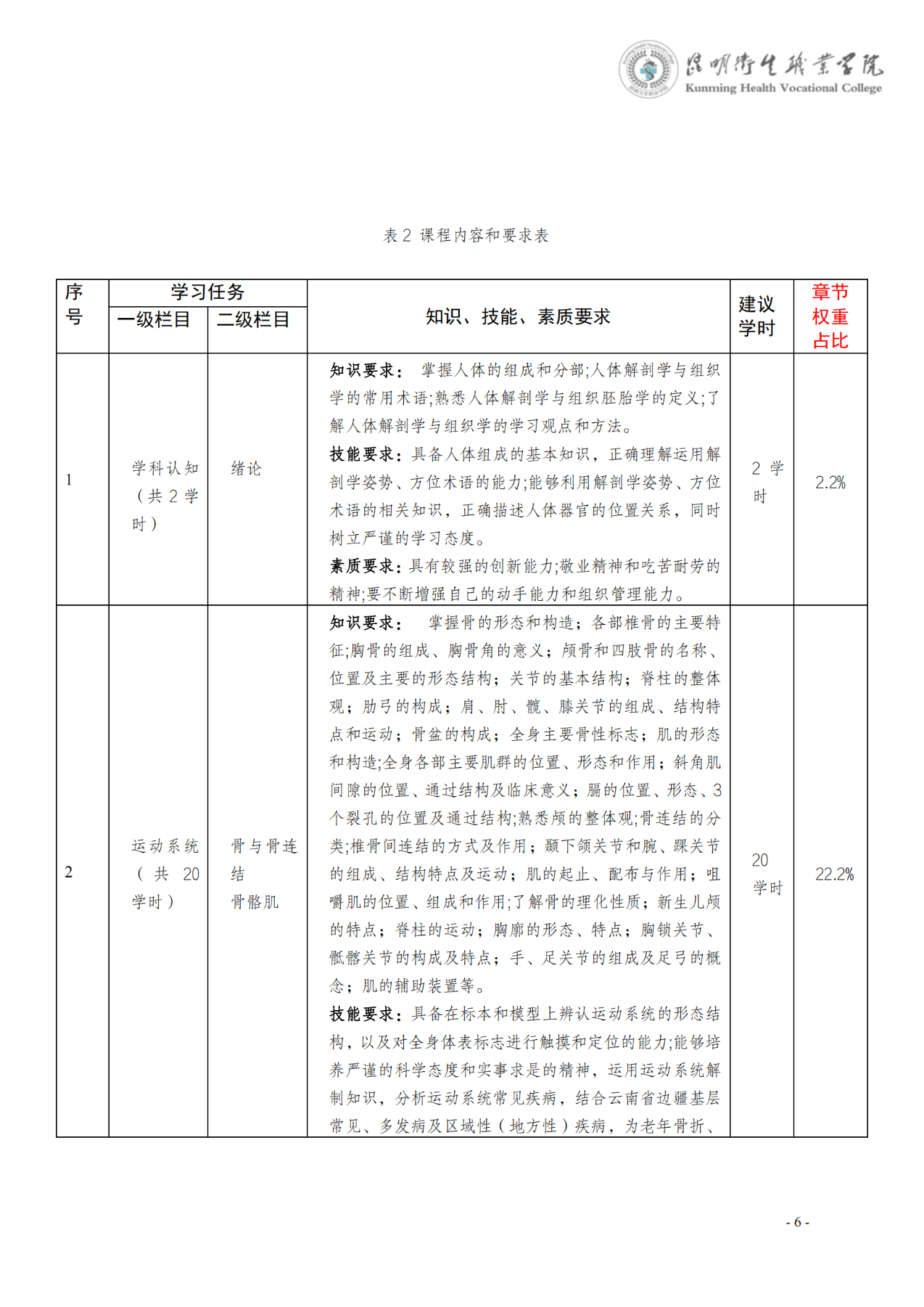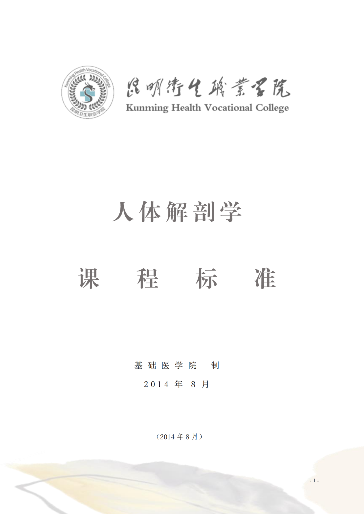 《人体解剖学》课程标准