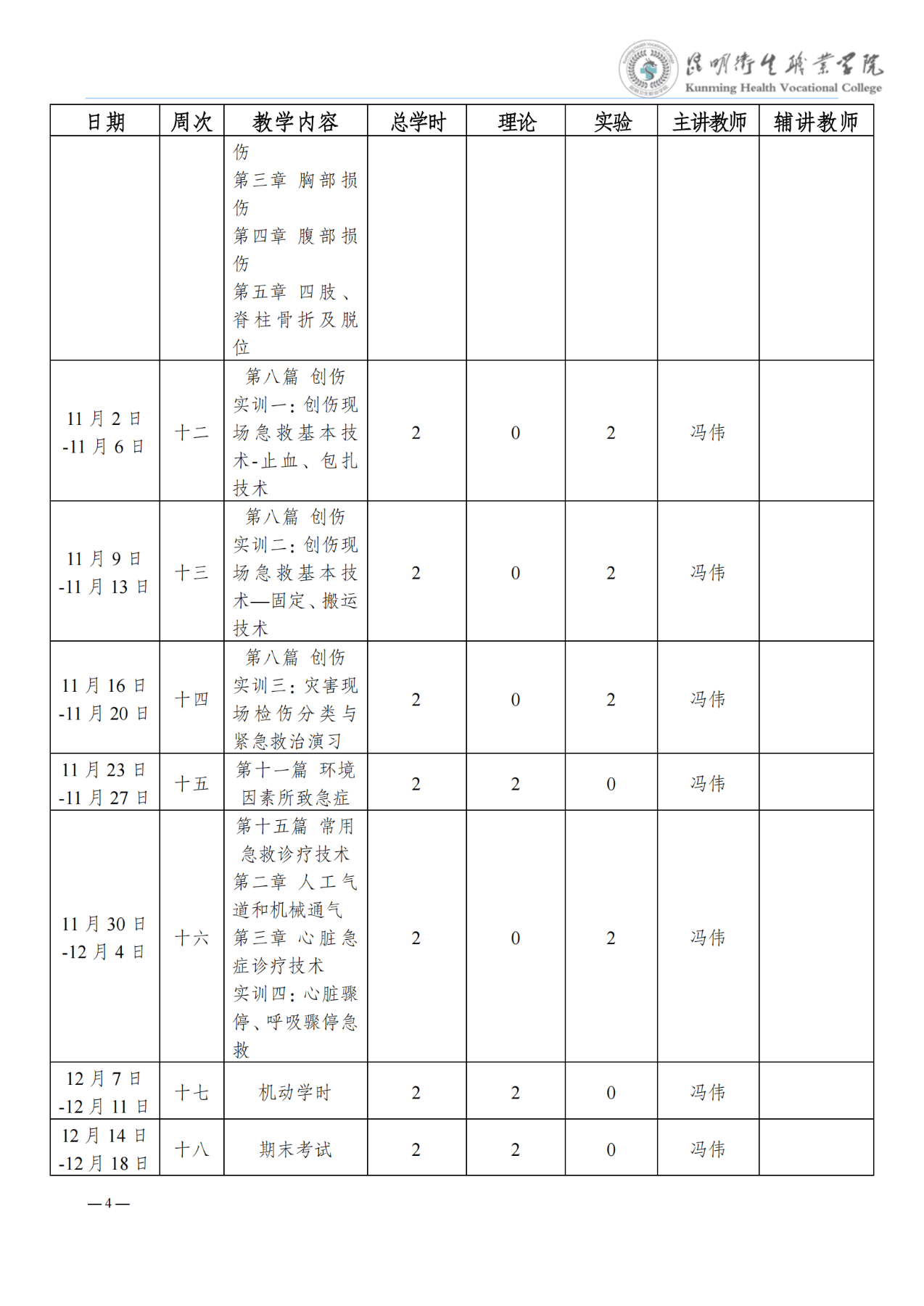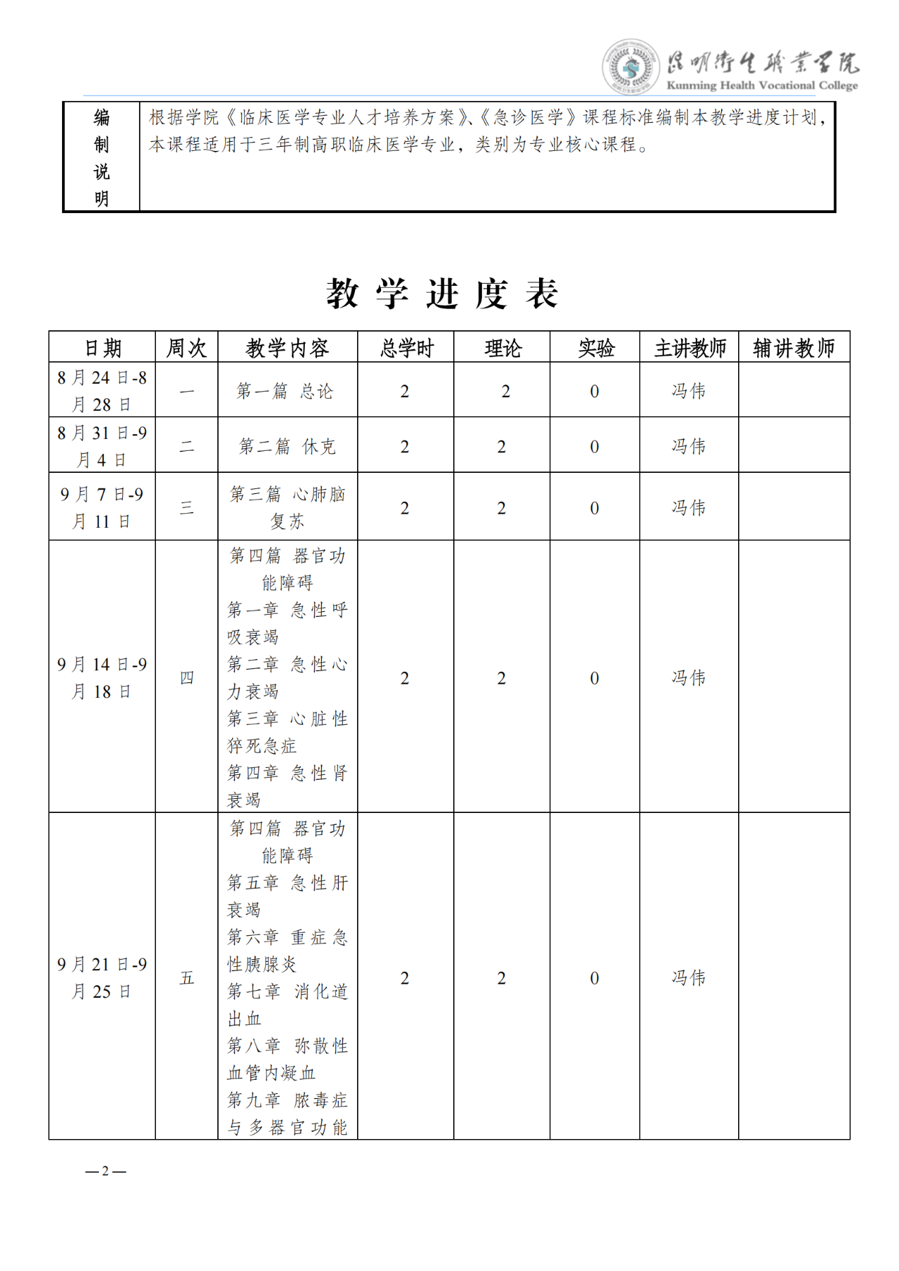 《急诊医学》教学进度表