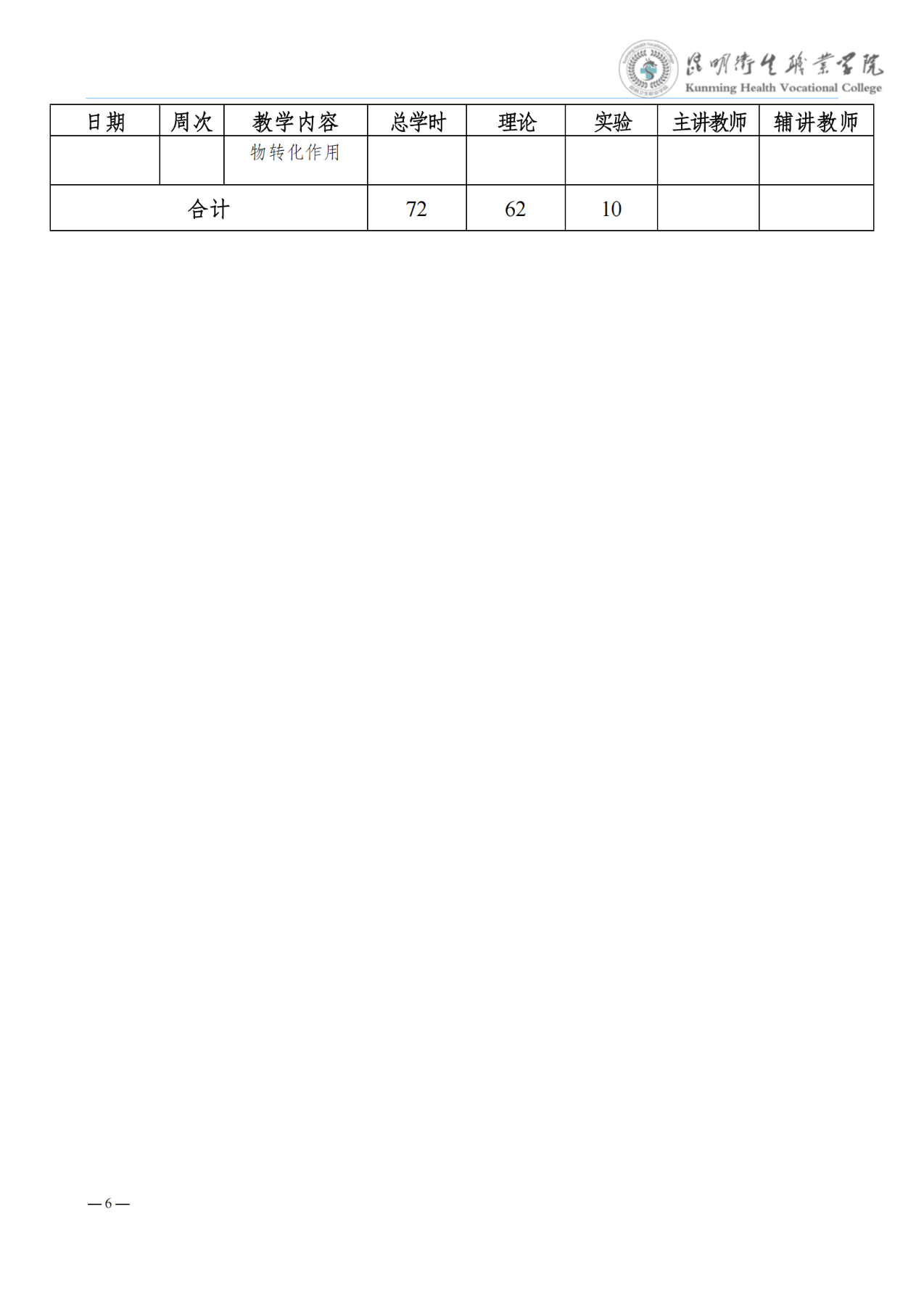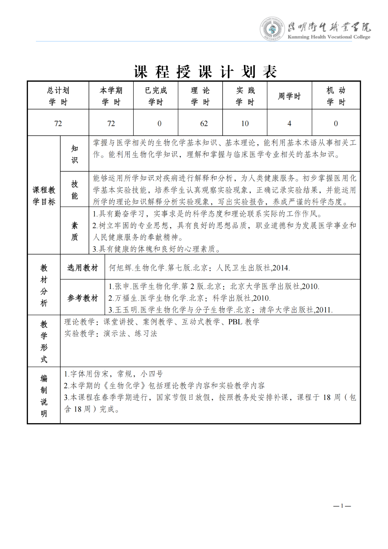 《生物化学》教学进度表