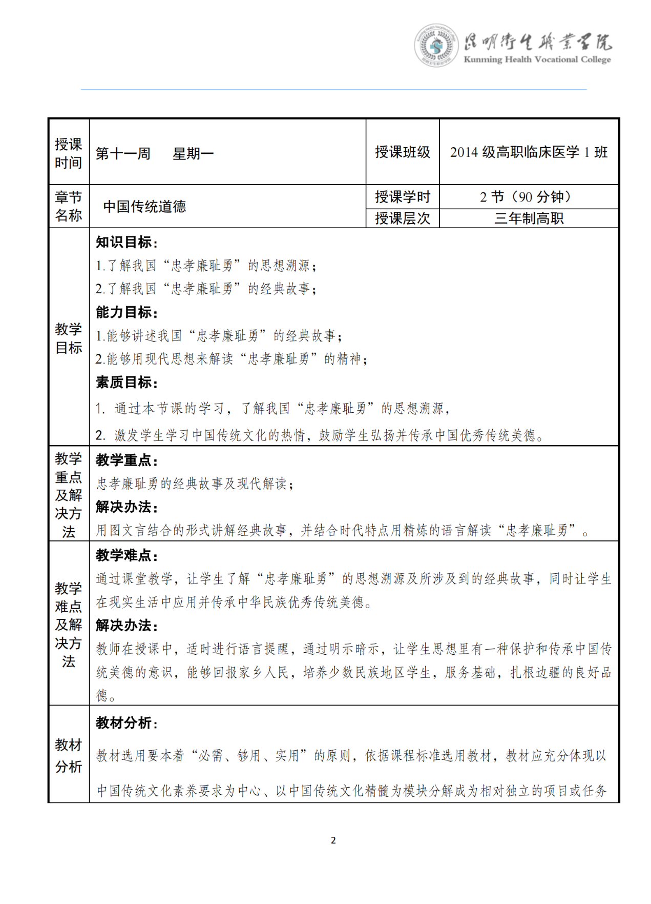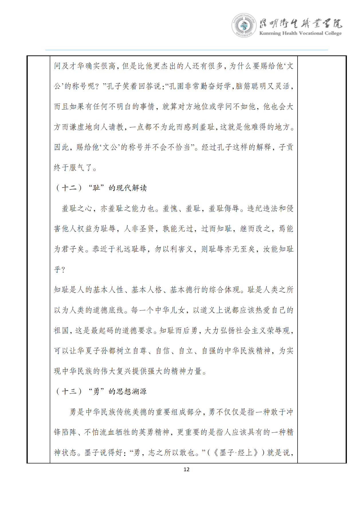 《传统道德》教案(大学语文)