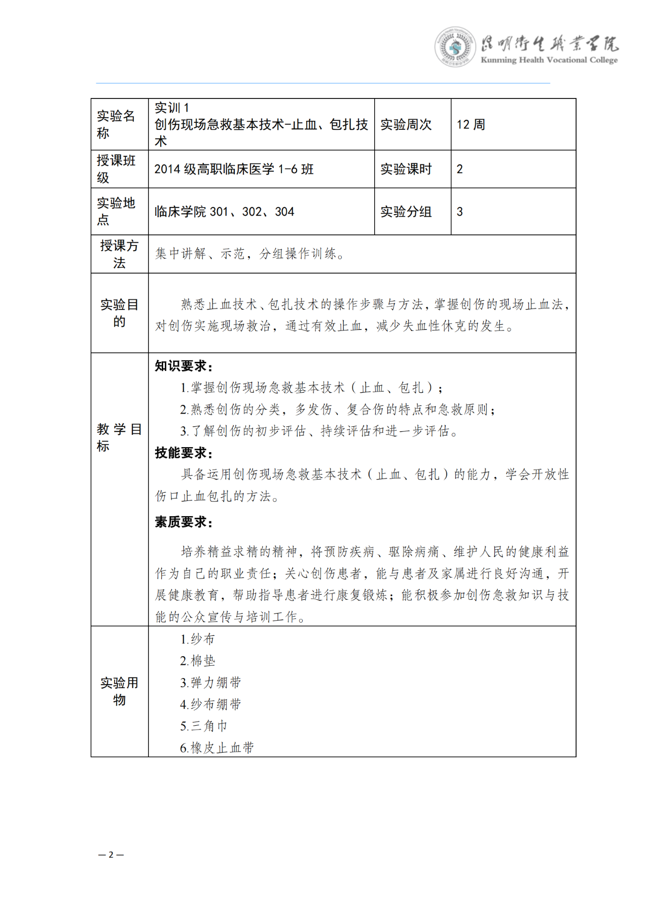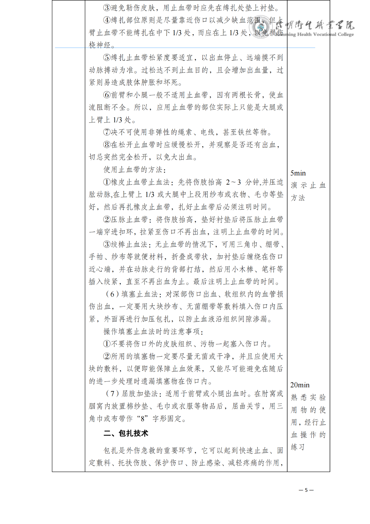 《创伤现场急救基本技术-止血包扎》教案(急诊学)