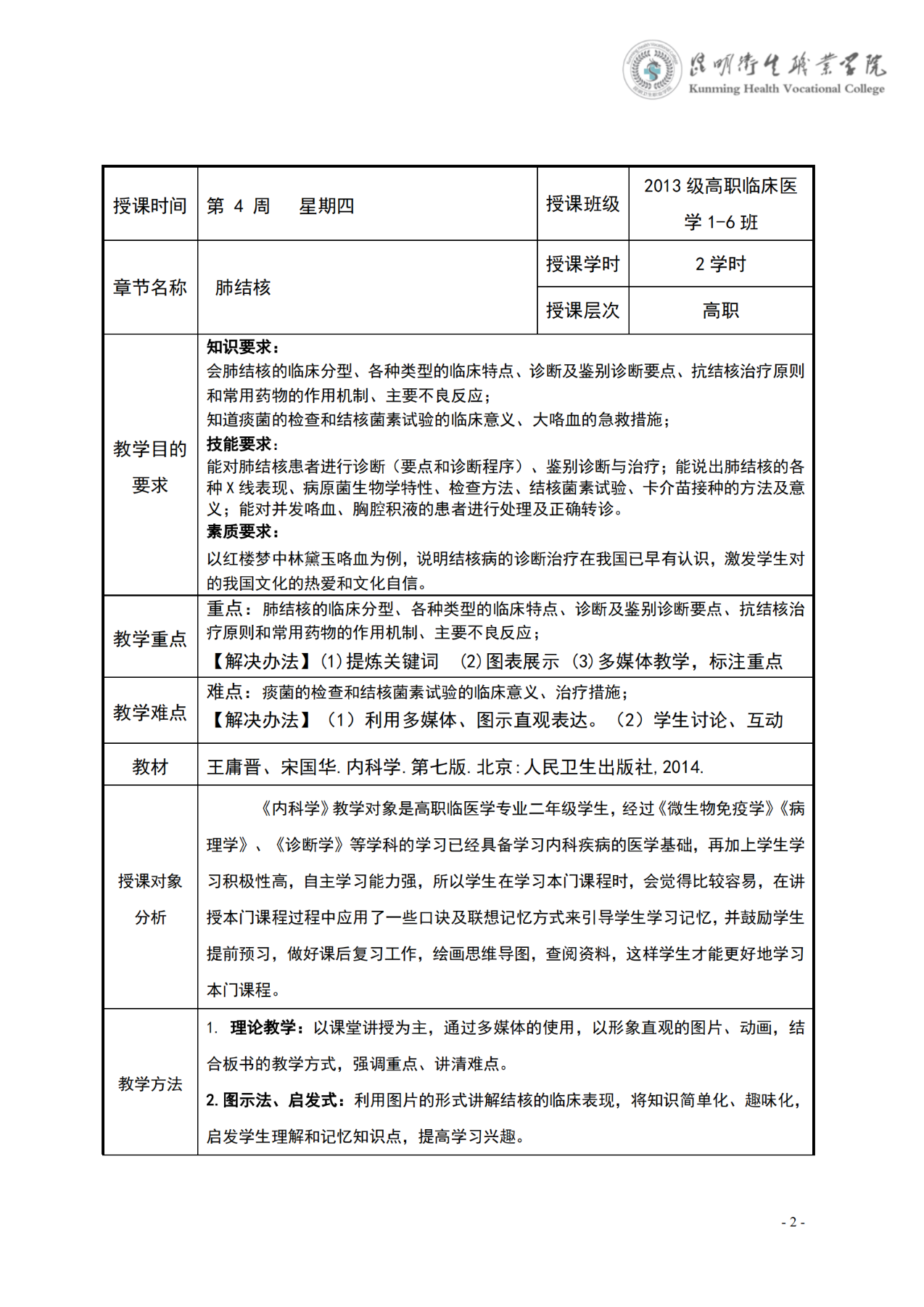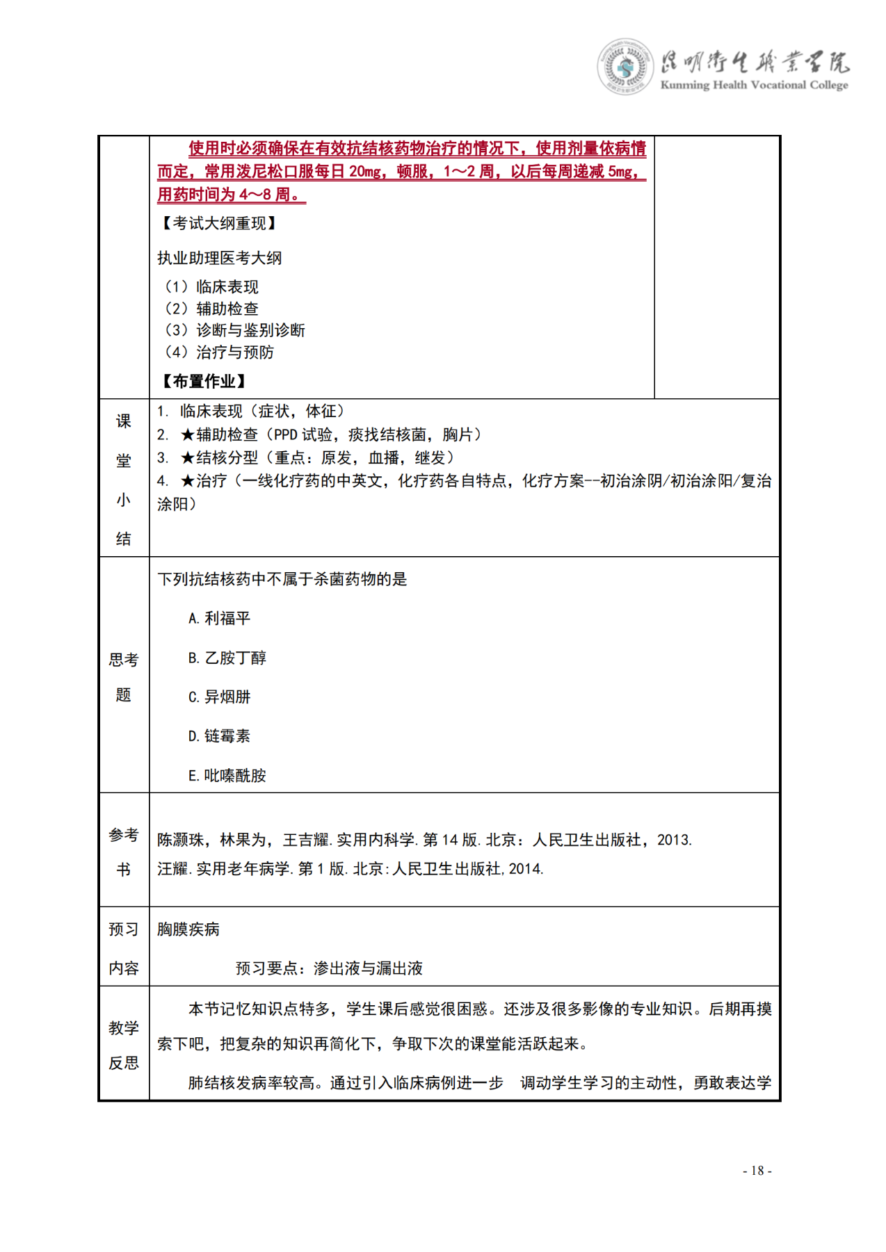 《肺结核》教案(内科学)