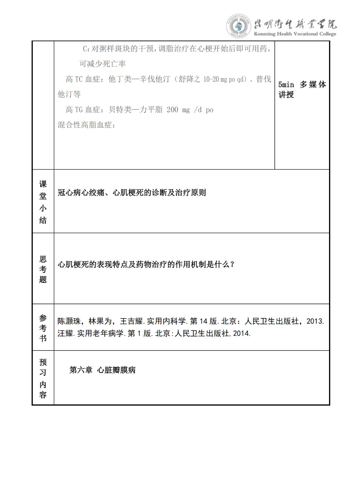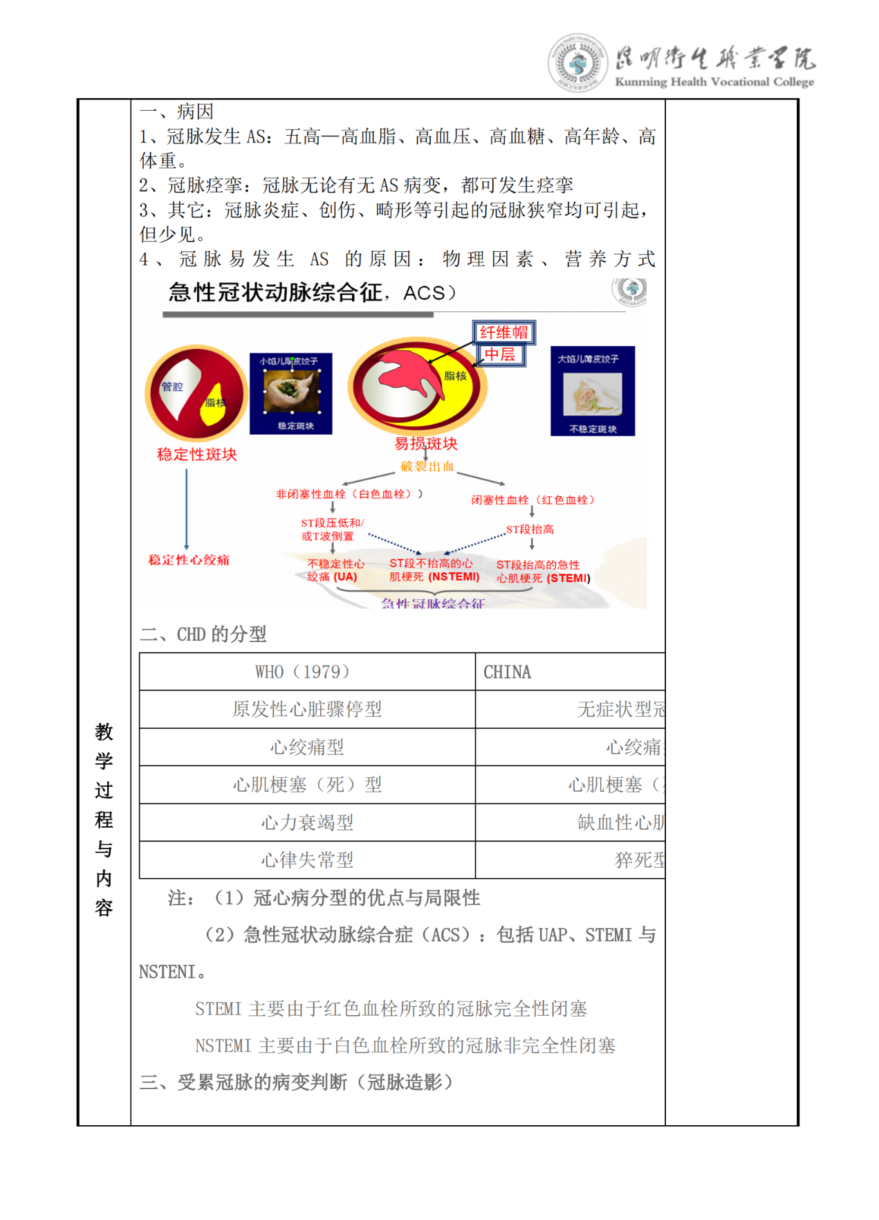 《冠状动脉粥样硬化性心脏病》教案(内科学)