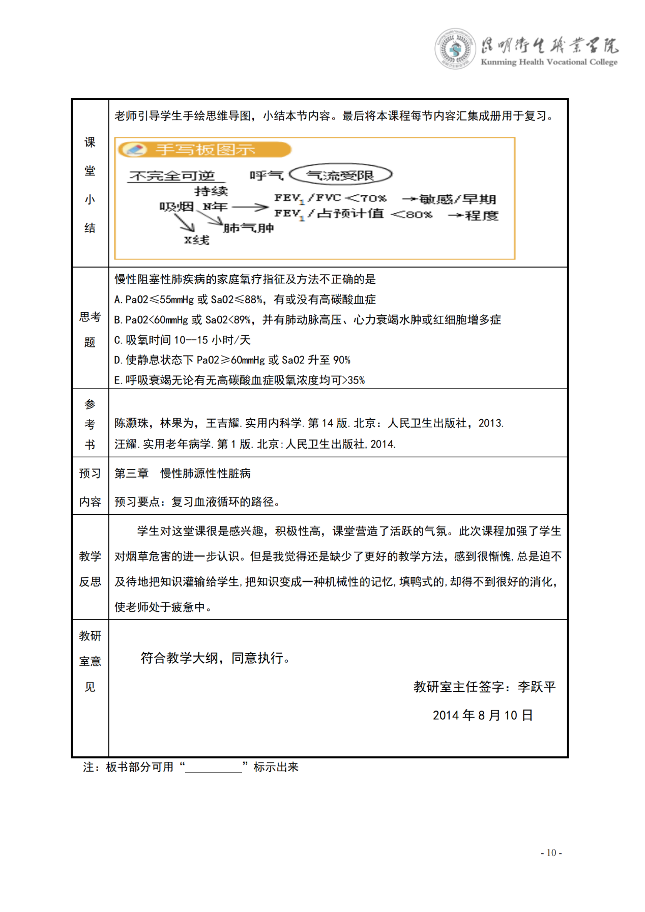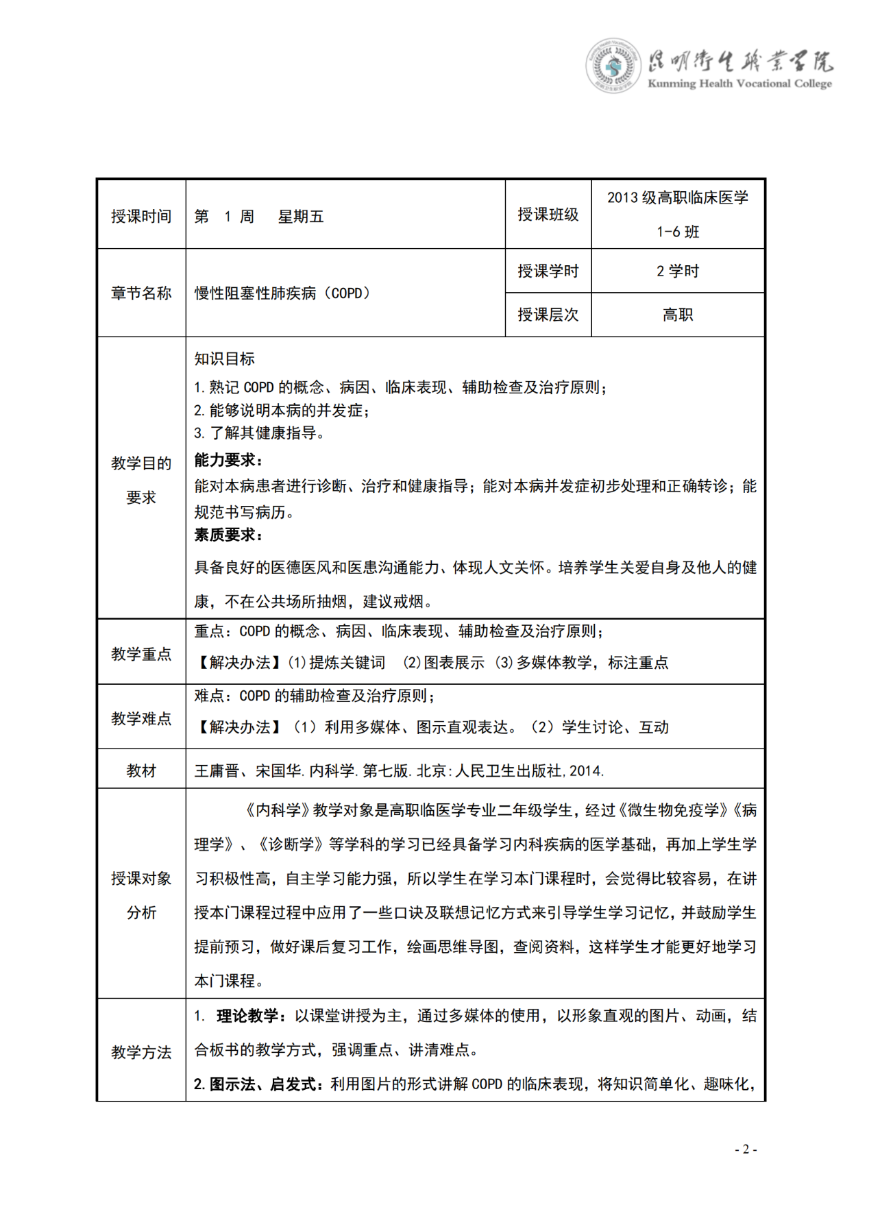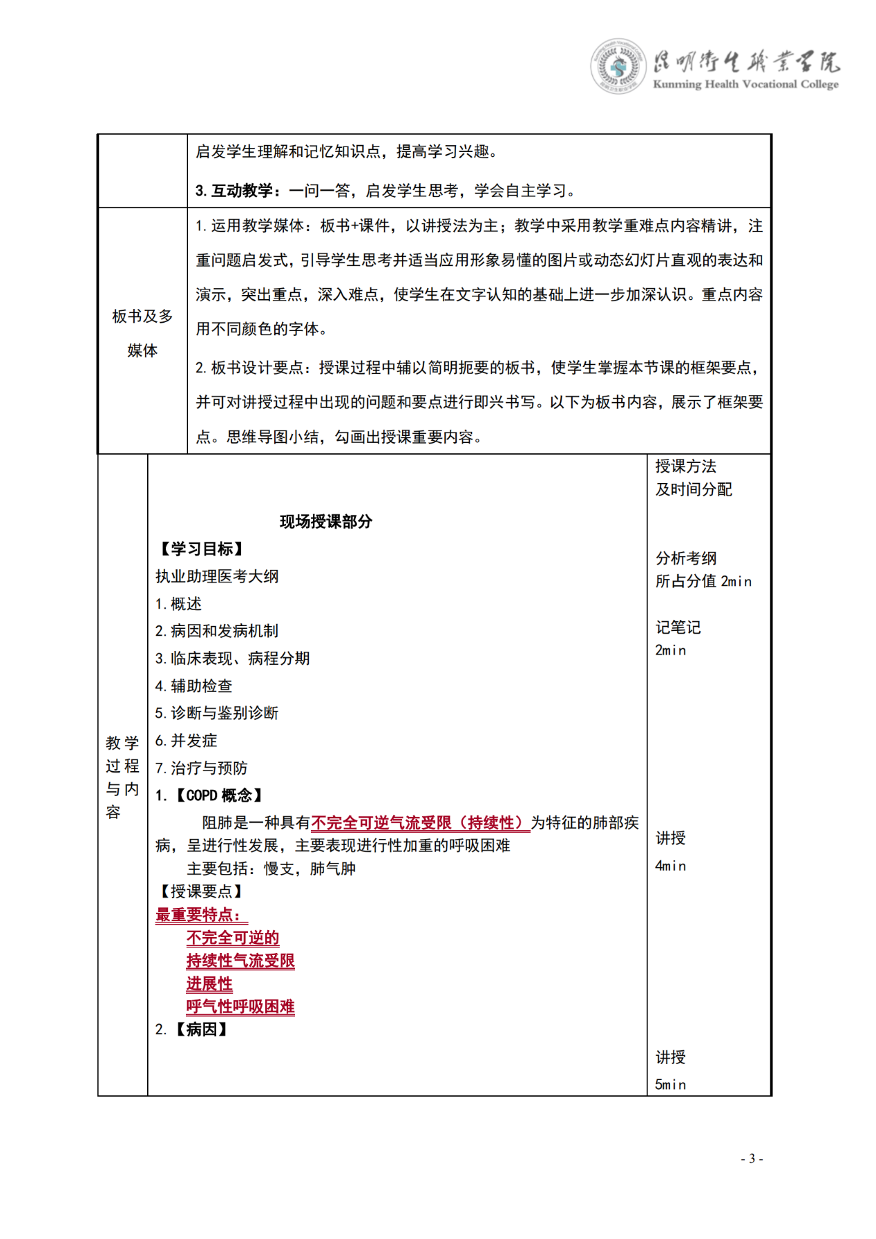 《慢性阻塞性肺疾病》教案(内科学)