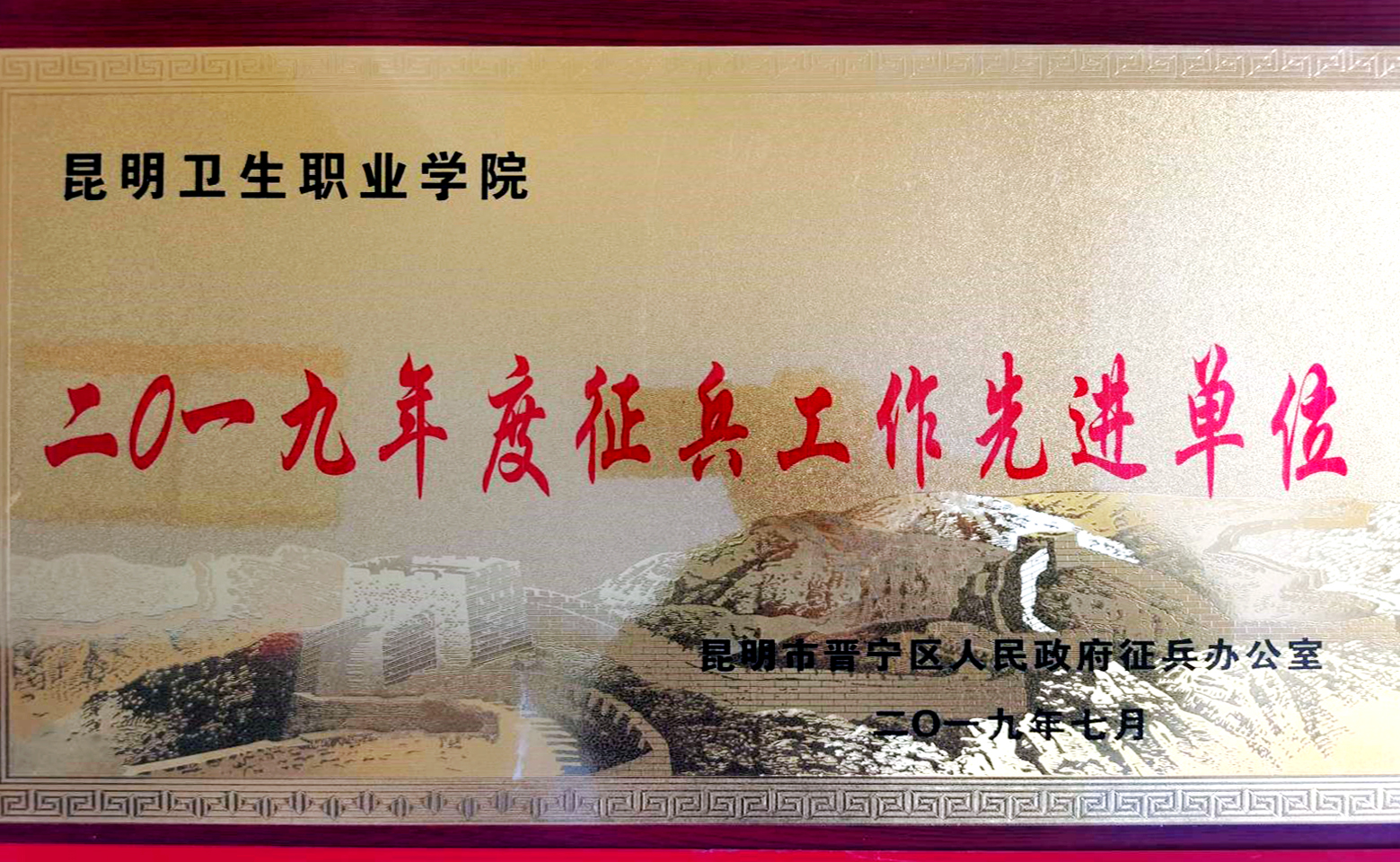 2019年云南省征兵办公室下发学院征兵任务数39人(毕业生10人,在校生29人),入伍人数53人(毕业生10人,在校生43人)。学院被昆明市晋宁区人民政府征兵办公室评为晋宁区先进征兵工作单位。