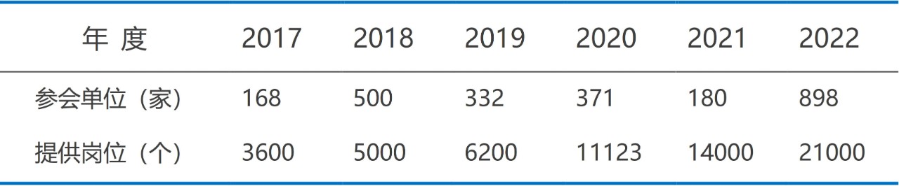 表2:2017-2022年学院双选会参会单位及岗位情况