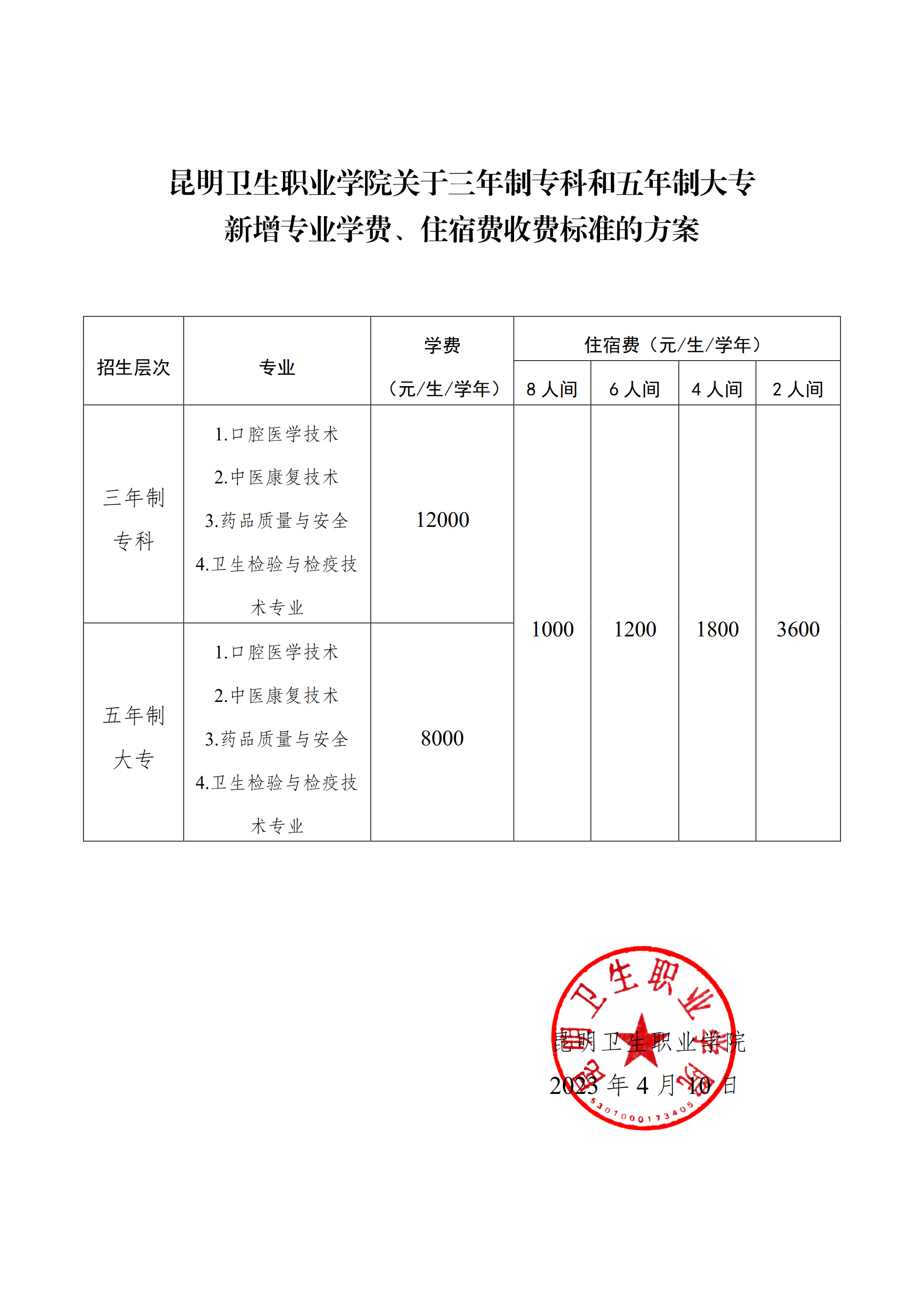 KY开元集团官网入口关于三年制专科和五年制大专新增专业学费、住宿费收费标准方案的公示