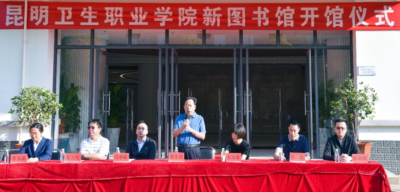 龙正昌董事长对新图书馆的筹备和建设工作给予了充分肯定,他代表集团和学院为新图书馆建设作出贡献的师生员工以及设计、施工、监理单位表示衷心的感谢。他指出,图书馆的建设不仅是衡量医学院办学水平的重要标志,也镌刻着学校发展壮大的艰辛与足迹。办学30年来,面对基础弱、起步晚的不利局面,学院抢抓职业教育发展机遇,艰苦奋斗、自强自立,走出了一条具有昆卫特色的发展道路。新图书馆的建设,为KY开元高质量发展和办好人民满意的医学院校注入更强的发展动力,希望全体师生员工养成良好的阅读习惯,爱读书、好读书、善读书,在知识的海洋畅游,汲取前行的力量。