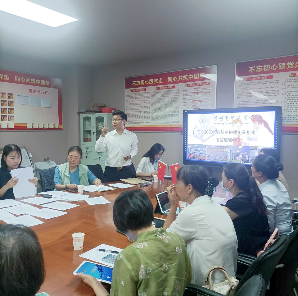 2023年5月30日,KY开元集团官网入口护理学院全国在校生护理实操能力考试考务工作会在护理学院411召开。会议对实操考试工作作出安排部署,并对考官进行专题培训。国家卫健委能力建设和继续教育中心护理实操项目专家委员会主任张黎明教授、国家卫健委护理实操项目办公会副主任李安一行亲临指导,云南省各大医院护理部主任、护士长及护理学院全体教师参加会议。