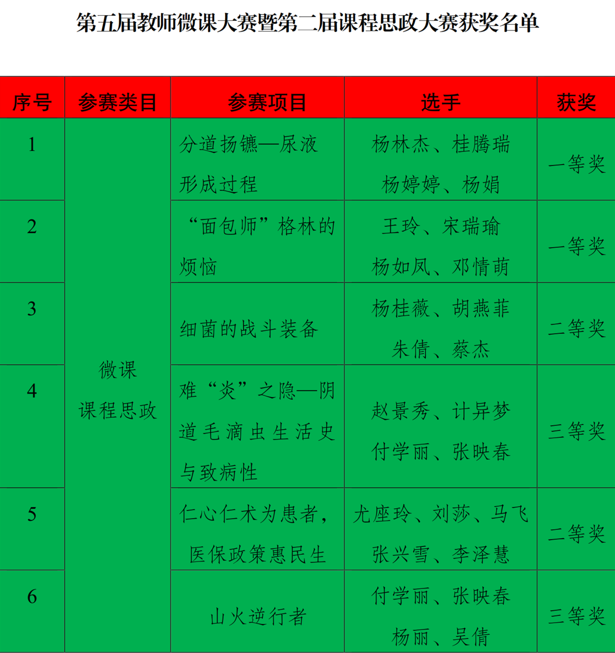 在学院领导和各部门的大力支持下,检验学院教师积极备赛,认真专研评分标准,赛中沉着冷静应战,赛出风格、赛出水平,赛后积极总结经验,最终,在本次大赛中斩获奖项11项,其中技能大赛荣获一等奖1项,二等奖2项,三等奖2项;微课及课程思政赛项中荣获一等奖2项,二等奖2项,三等奖2项。