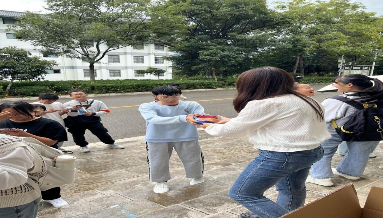 老师们为同学们发放月饼。月饼虽小,情意却浓,承载着学院浓厚的关心与爱护,寄托着对莘莘学子的美好祝愿,希望他们学业有成,未来可期!