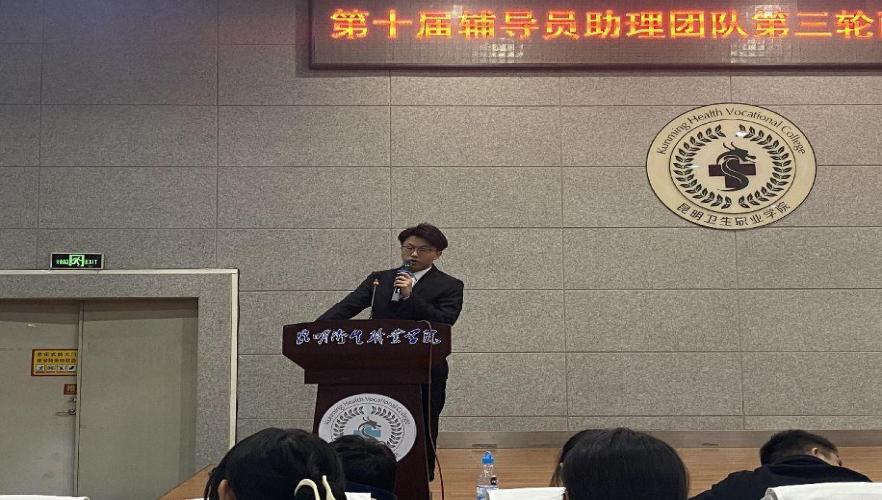 第二项议程,由第十届辅导员助理团队第三轮面试同学进行主题演讲,演讲中心围绕“自我介绍、团队认知、工作设想、自我定位”四个板块展开。
