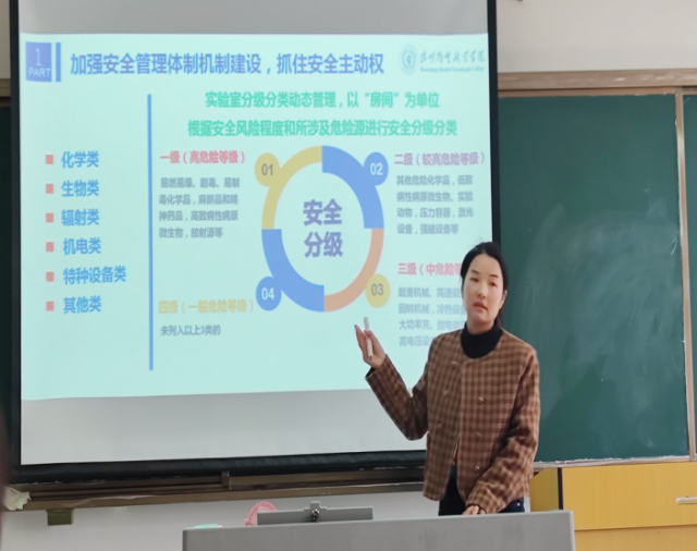 会上,教务处教学综合管理科桂腾瑞主要从实验室安全工作的重要性、实验室安全管理的实践、实验室安全检查要点以及KY开元实验室现存在的问题与引发的思考四个方面进行培训。