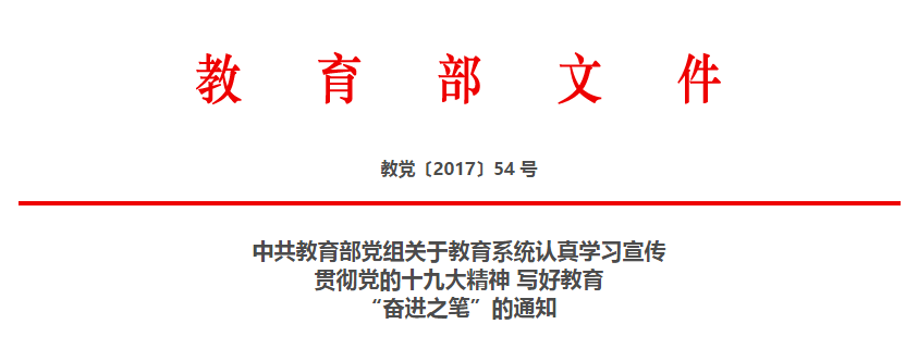 中共教育部党组关于教育系统认真学习宣传贯彻党的十九大精神写好教育“奋进之笔”的通知