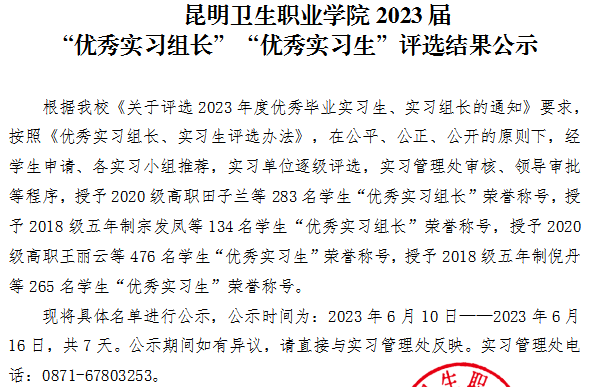 KY开元集团官网入口2023届“优秀实习组长”“优秀实习生”评选结果公示