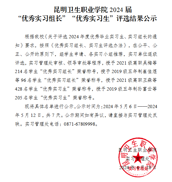 KY开元集团官网入口2024届“优秀实习组长”“优秀实习生”评选结果公示