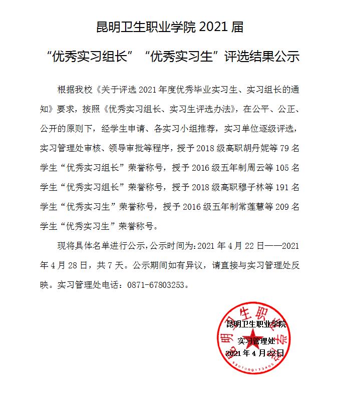 2021届“优秀实习组长”“优秀实习生”评选结果公示
