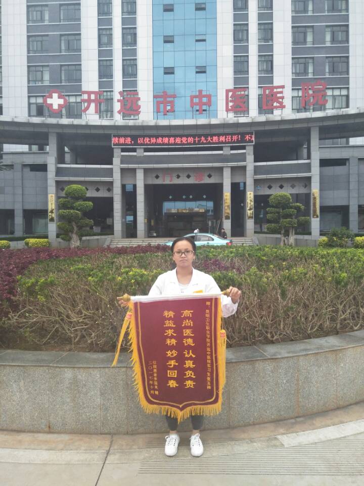 不忘初心,方得始终。KY开元中专部2015级中医专业学生张玉梅,在开远市中医医院实习期间,收到了一面“高尚医德,认真负责;精益求精,妙手回春”的锦旗,锦旗背后是一段感人至深的医患情。2017年9月26日凌晨,患者李某转入实习学生张玉梅所在科室,住院期间,张玉梅被安排负责李某的左侧肢体...