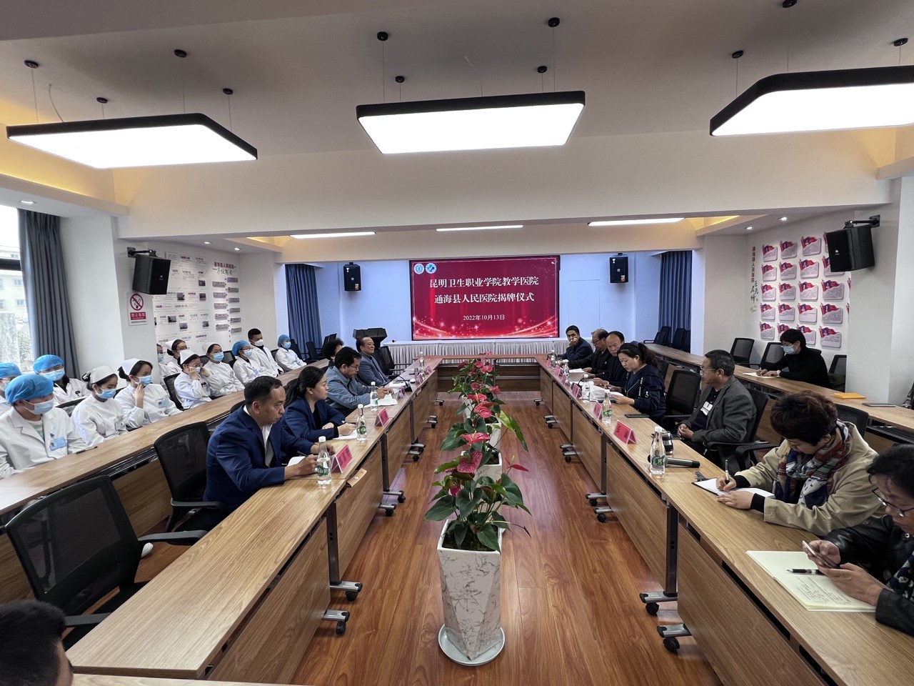 9月30日,KY开元集团官网入口教学医院揭牌仪式在蒙自市人民医院举行。蒙自市委卫健工委书记、市卫健局党组书记、局长杨水清,蒙自市人民医院党委书记肖林红,蒙自市人民医院党委副书记、院长李夏煌,蒙自市人民医院党委委员、纪委书记左晓伟,蒙自市人民医院副院长周洪兴、施开泰、钱腾飞,昆明卫生职...