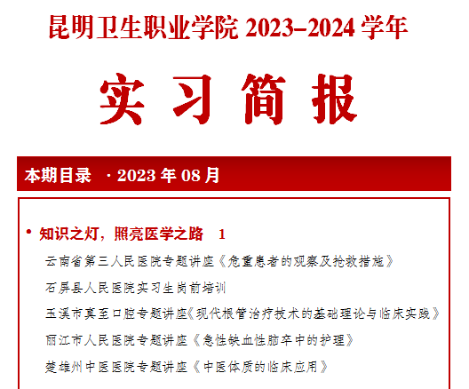 医学生临床实习是通过医疗实践,巩固所学的基础理论知识,训练基本技能,在医护人员指导下,掌握常见病、多发病的诊断和治疗;是培养学生的实践能力、创造能力、就业能力和创业能力的重要环节。为贯彻执行《教育部等八部门关于印发职业学校学生实习管理规定的通知》(教职成[2021]4号),《云南...