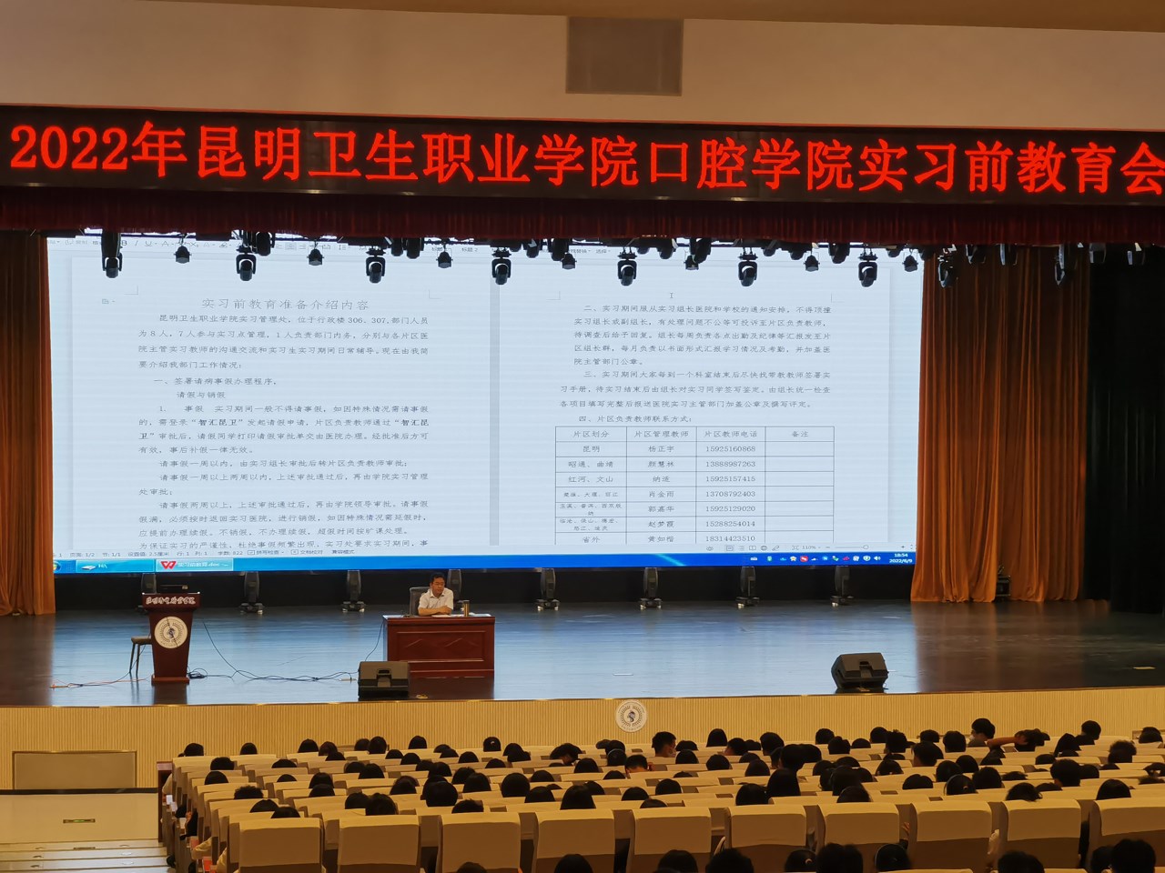 6月9日,KY开元2022年度口腔学院实习前教育会议在晋宁校区学术报告厅召开。张尤松副院长为口腔学院的全体学生,做了临床实习前的教育,并提出要求与期望。张尤松副院长首先对完成理论学习,即将踏上实习新征程的同学们表示衷心祝贺。其次,从安全、工作、纪律等方面进行了实习前动员及相关注意事项...