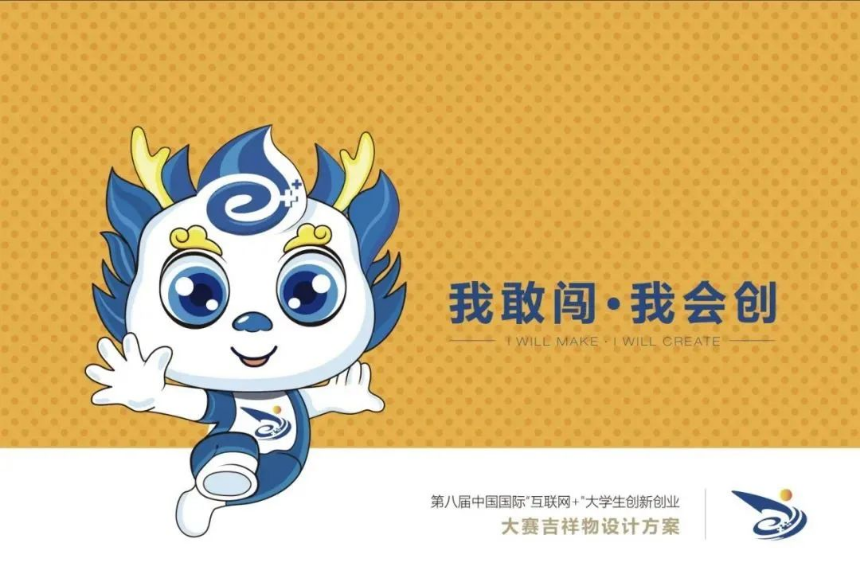 本届大赛吉祥物取名为“闯”,取自互联网+大赛的主题“我敢闯 我会创”。是以中国神话传说神兽“龙”为原型设计而成的,贯穿了整个中国历史,浸润着中国的文化艺术,弥漫在整个中华民族的风俗习惯之中。华夏儿女作为“龙的传人”,有着百折不挠、敢于创新的精神。重庆的铜梁龙早在20世纪80年代就闻名海内外,被誉为“中华第一龙”。2006年,铜梁龙舞列入首批国家级非物质文化遗产名录。以“龙”的形象作为本届大赛吉祥物,也体现了主办地的文化特色。