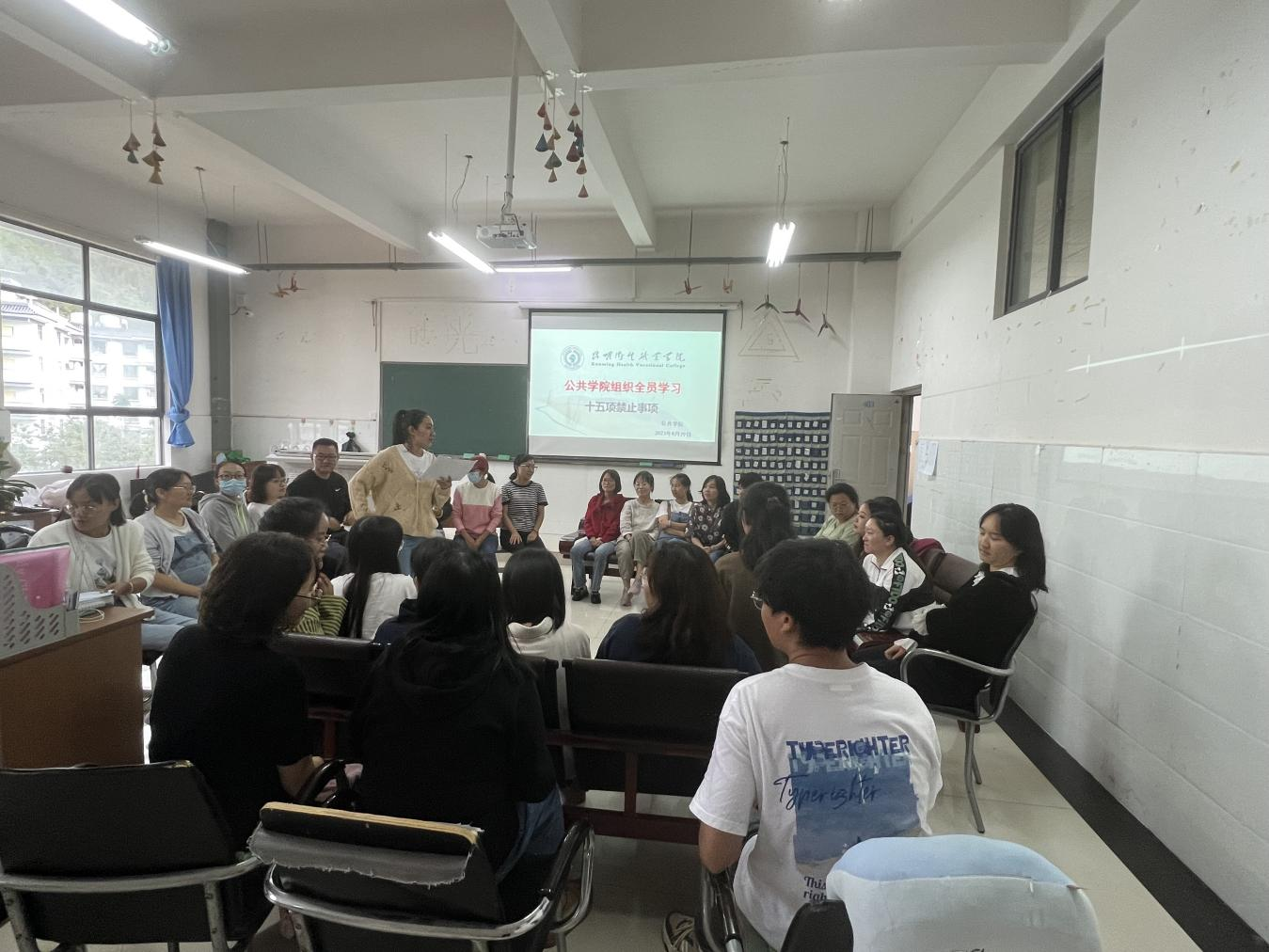 2023年8月28日,于综合楼403办公室召开2023-2024学年第一学期第二次全体教职工大会。本次会议由教学副院长朱蓉主持和主讲,公共学院院长张洪建、支部书记杨丽琴以及公共学院全体教师参加。