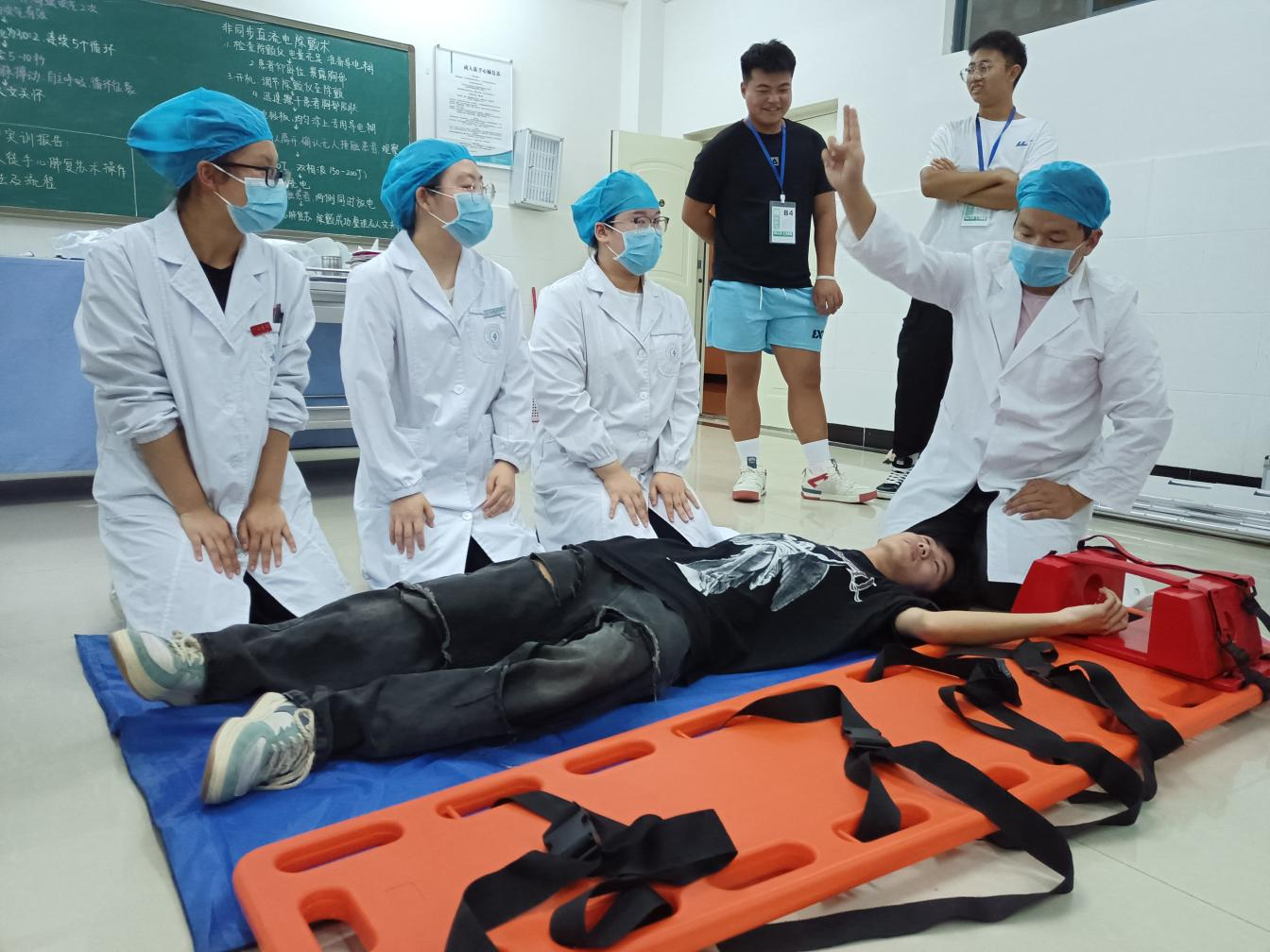 9月7日,结合理论内容,进行了心肺复苏、止血包扎、海姆立克急救法、骨折固定及搬运的操作演示,并详细讲解了操作要领。为了保证培训质量,提高学员的实践操作水平,学员们进行了现场实操学习,培训指导教师巡回纠错,不断提高学员实操的质量和效率。最后,有序地组织学员进行理论和实操的考核。
