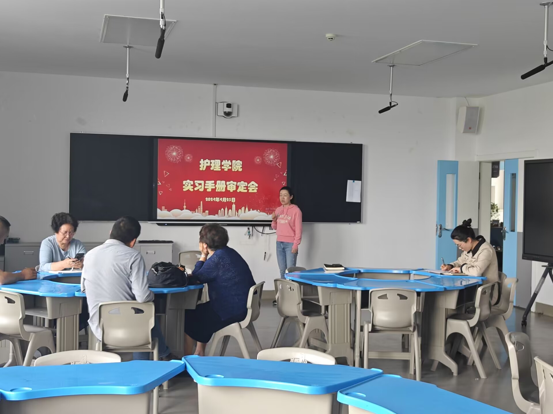 为确保学生的临床实习工作能够得到充分的指导和规范化管理,护理学院于2024年4月23日14:00在学院210顺利开展了有关学生实习手册审定的专题会议,护理学院领导班子全体人员参会。
