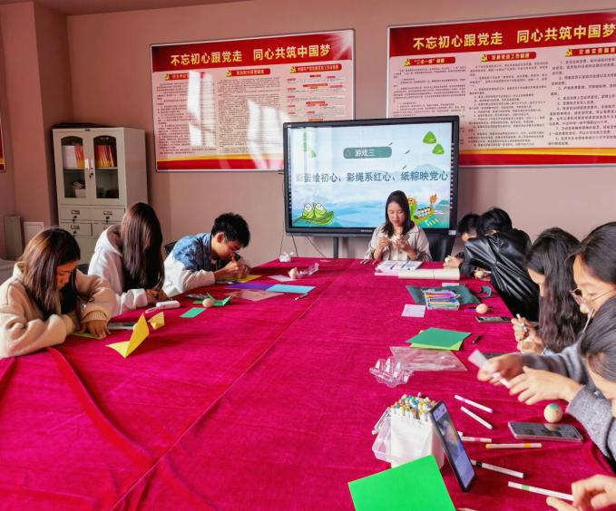 “彩绳系红心” 环节,支部副书记何娇同志亲手为每位同志系上融入红色元素的端午彩绳,送上“端午系彩绳,初心永向党” 的深切关怀与节日祝福。“纸粽映党心”活动里,大家利用彩色卡纸、剪刀、胶水等工具制作立体手工粽子,并在粽子上书写党建金句与端午祝福语,完成的作品成为传递团结与创意的载体,增强了团队凝聚力。