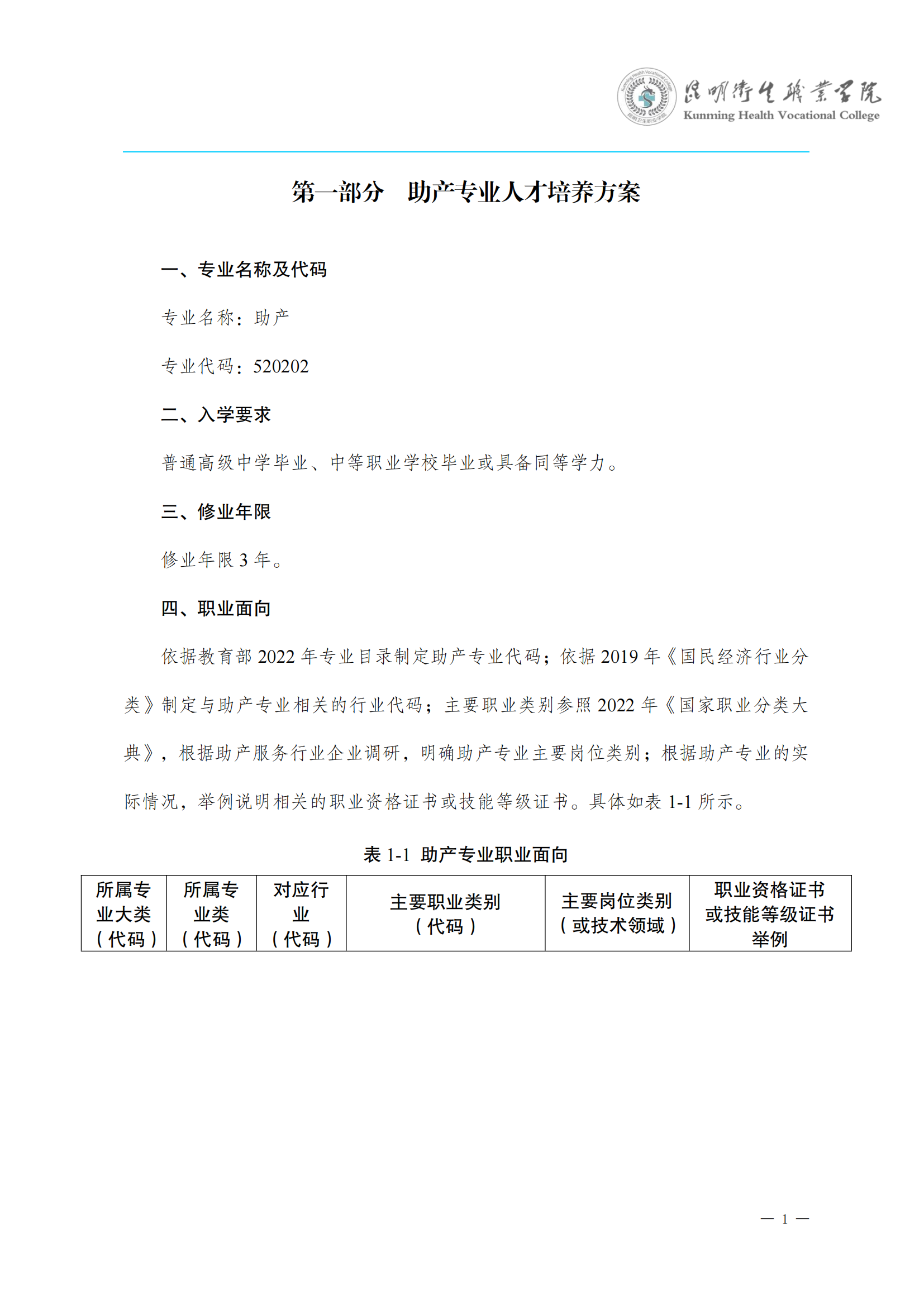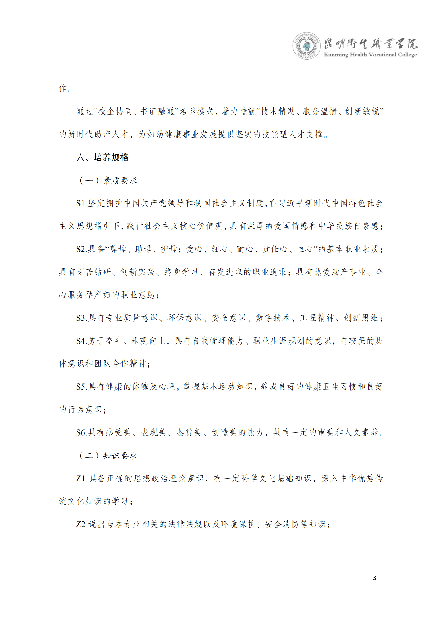 KY开元集团官网入口三年制专科助产专业人才培养方案(供23级三年制专科学生使用)