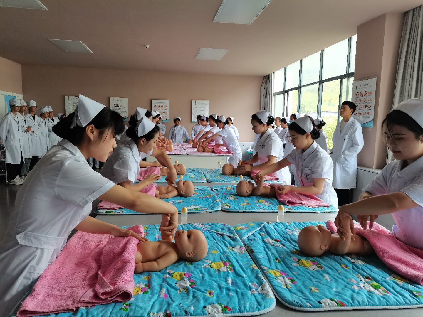 活动当天上午,护理学院分别开展了野外急救综合演练、院前急救、ICU情景模拟、出入院护理、婴儿抚触、无菌技术操作等职业技能情景展示宣传活动。2020级高职护理、助产班,2019级五年制护理、助产班及部分其他专业同学进行了观摩。