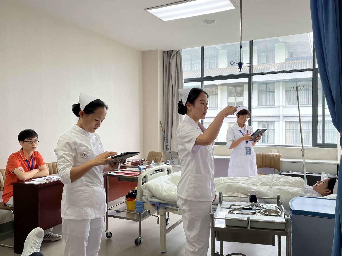一、考官对于系统操作不熟悉:由于此次考试初次使用全国护理实操考试系统,首日考试考官对系统的操作方法不熟悉,出现退出系统,未完成评分等现象。导致考试流程延迟,首日考试未能在预定时间内完成。为此,在下一次考试来临前,需要对考官进行系统性的培训,保证考官熟悉评分系统。