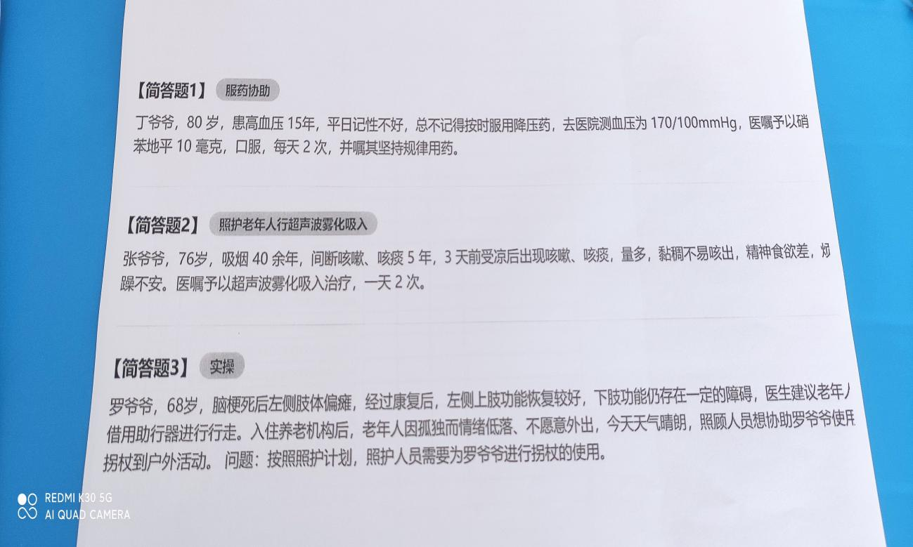 考试过程中,考务人员各司其职,考场秩序井然,考生态度端正,沉着冷静,操作标准规范,充分展示了他们的职业能力和专业素养。在教务处、护理学院、继续教育学院及考评站的共同努力下,本次“1+X”老年照护职业技能等级证书考试顺利完成,考试组织工作专业、规范、井然有序,受到考评站负责人高度肯定。