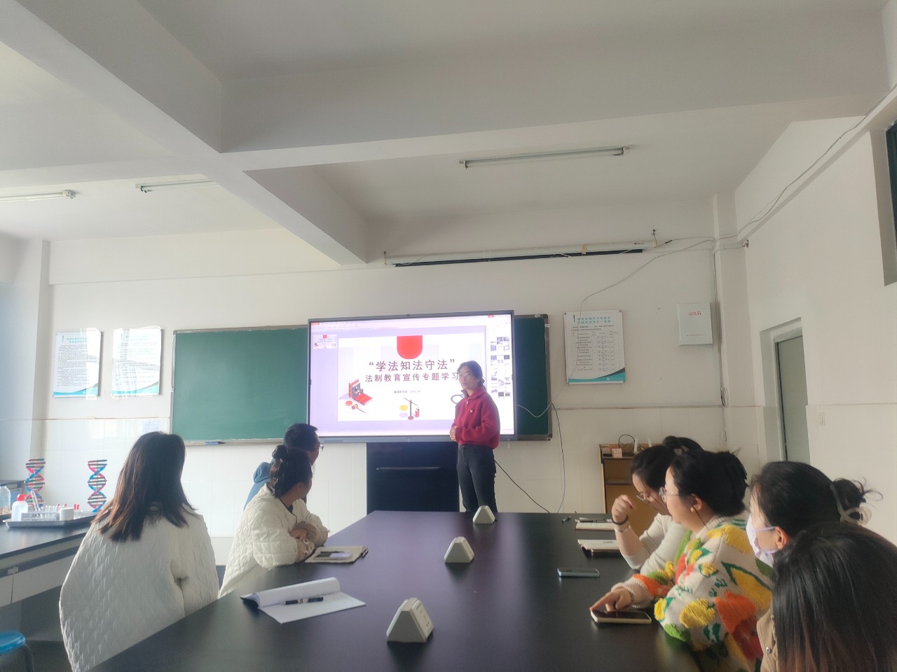 为深入贯彻落实习近平法治思想,加强学院师生的法治观念,提高师生法律素养,3月28日,基础医学院组织开展了2025年春季学期“开学第一课”暨“学法知法守法”法治教育宣传专题学习活动,由直属党支部书记李睿雯领学,全体教师参与。