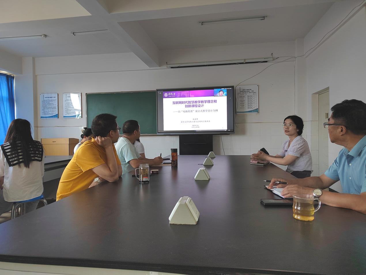随着我国教育事业的发展,教学模式的不断变革,教学改革已成必然之势。为加快教育教学改革,促进教师与时俱进,提升教师教学能力,提高教育教学质量,7月14日下午14:00,基础医学院组织全体教师共同学习了由清华大学朱桂萍教授讲授的网络直播课--“互联网时代智慧教学理念和创新课程设计”。
