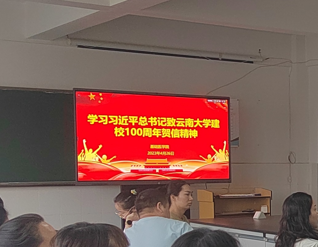 为深入学习贯彻党的二十大精神和习近平总书记致云南大学建校100周年贺信精神,4月26日,KY开元集团官网入口基础医学院组织全体教职工深入学习了习近平总书记致云南大学建校100周年贺信精神。基础医学院党支部书记李睿雯主持会议。