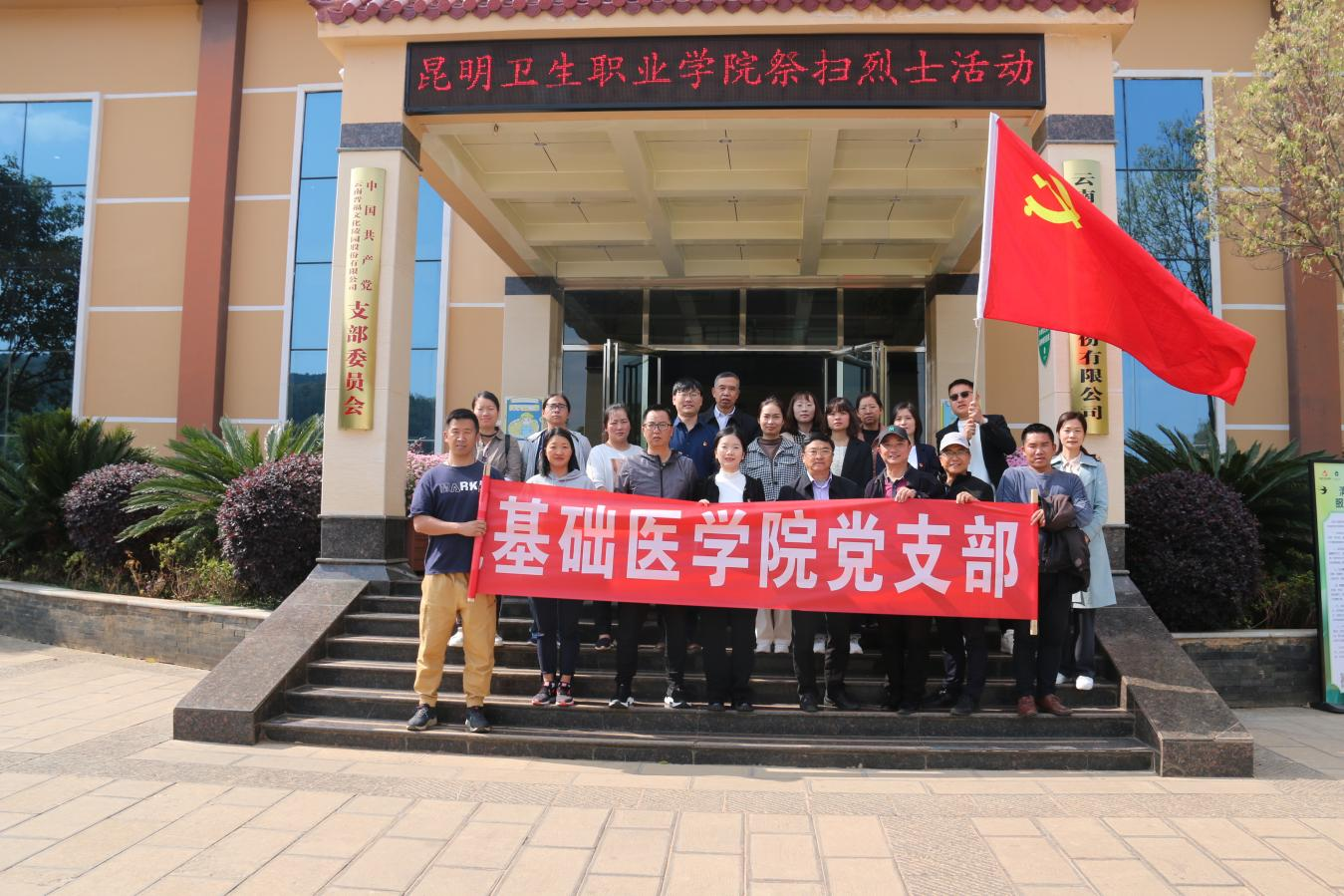 重温历史,悟本思源。3月31日下午,基础医学院教师、党员、入党积极分子,前往晋宁晋福古园爱国主义教育示范基地,组织开展“缅怀革命先烈坚定理想信念”清明祭扫烈士陵园活动。青山默默,松涛阵阵。全体教师怀着无比崇敬的心情来到晋宁晋福古园滇中军魂烈士园区,向烈士献花、默哀。缅怀先烈,坚定理想。基础医学院党支部书记李睿雯带领全体党员教师,面向党旗,面朝烈士碑,重温入党誓词。仪式结束后,全体教师有序参观了烈士...