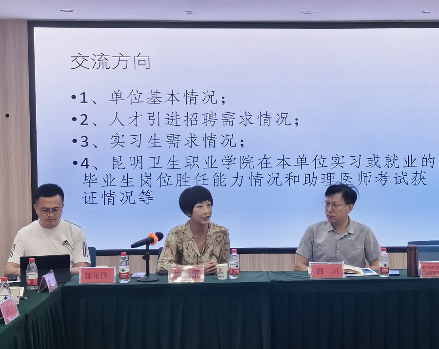 曲靖市医学会民营口腔专业委员会阎川会长介绍了民营口腔医疗行业发展基本情况,并请参会的14家民营口腔医疗机构代表对本单位基本情况、实习及人才引进招聘需求等进行了逐一的交流介绍。在交流过程中,14家民营口腔医疗机构对学院的人才培养、理论和实践实训教学等提出了宝贵的建设性意见。