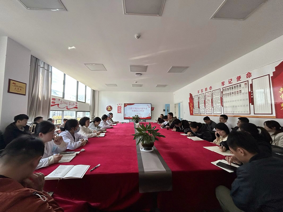 为全面落实推进学校就业工作部署,切实做好2025届毕业生就业服务工作,口腔学院于2025年3月25日在学院会议室召开2025届毕业生就业工作推进会。学院领导班子、全体任课教师及辅导员参加会议。