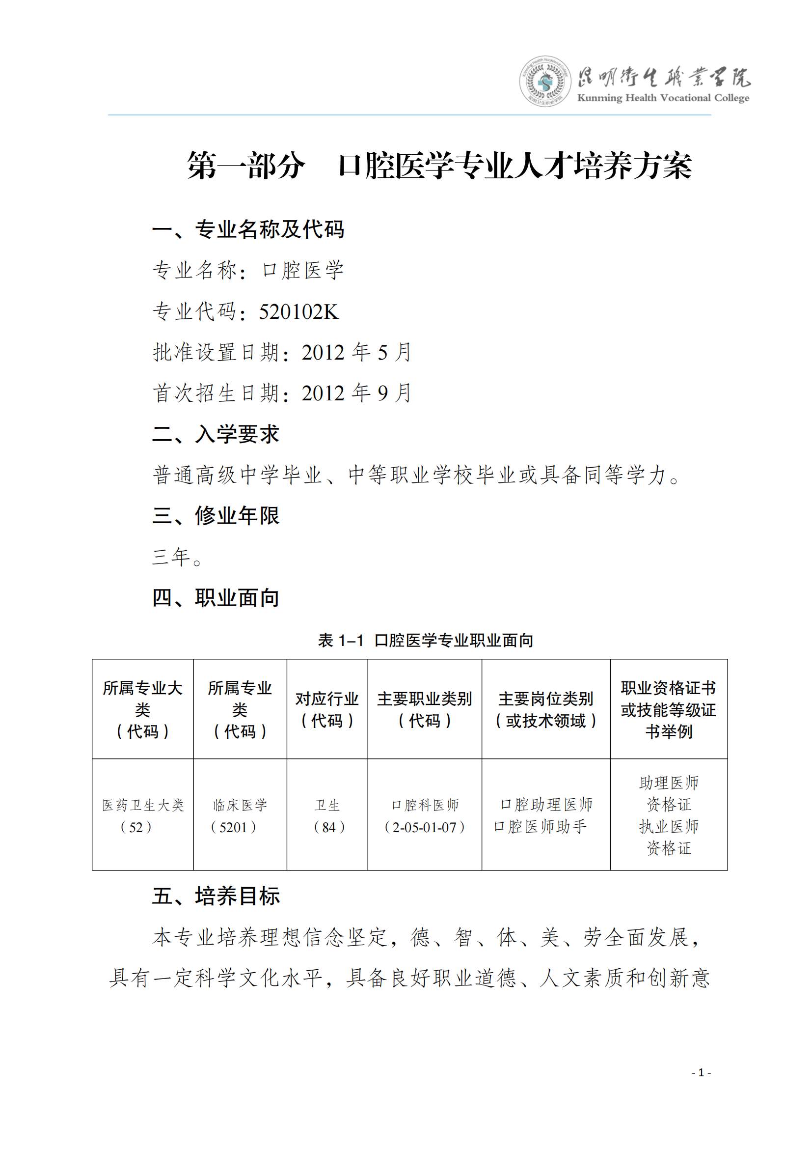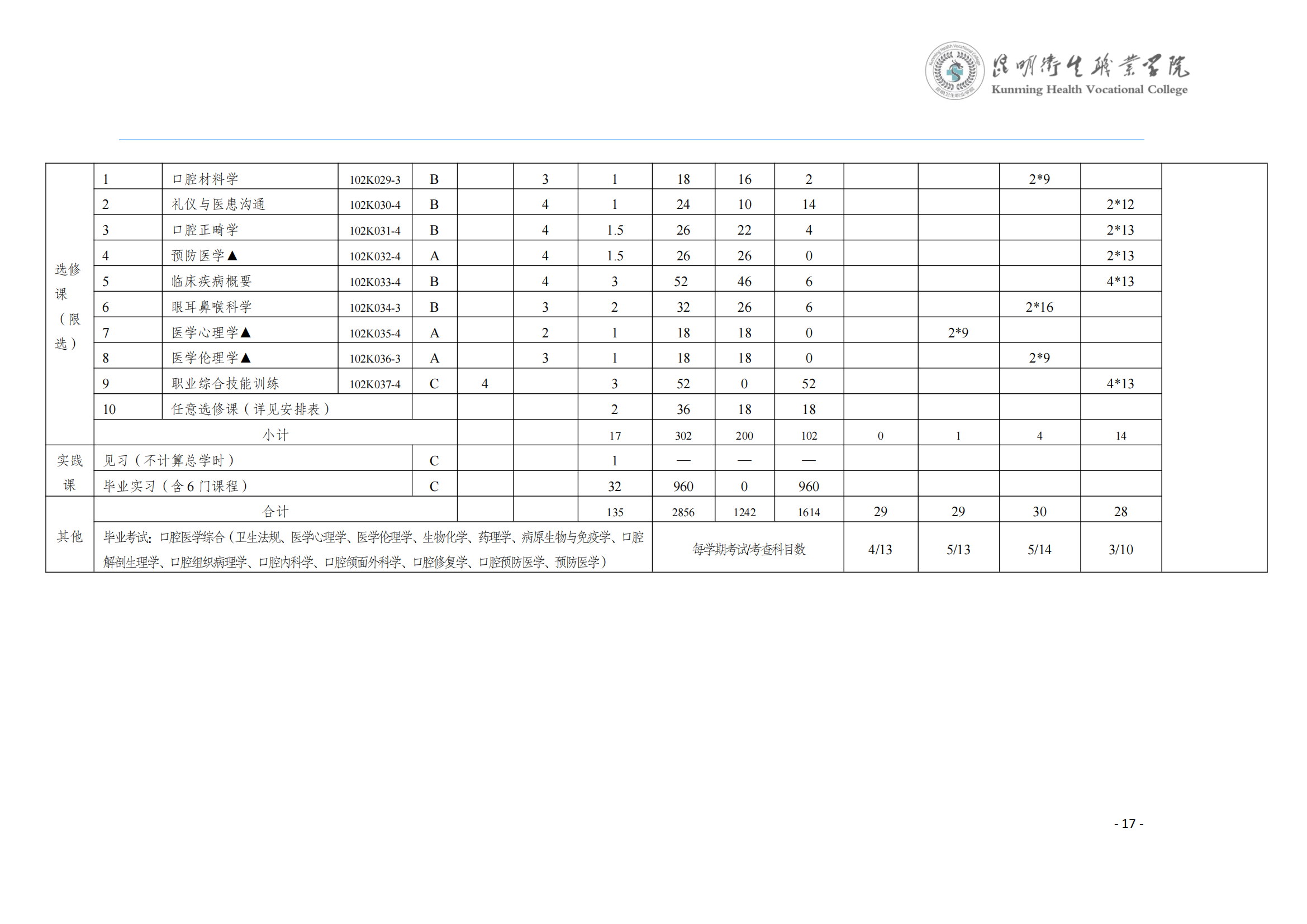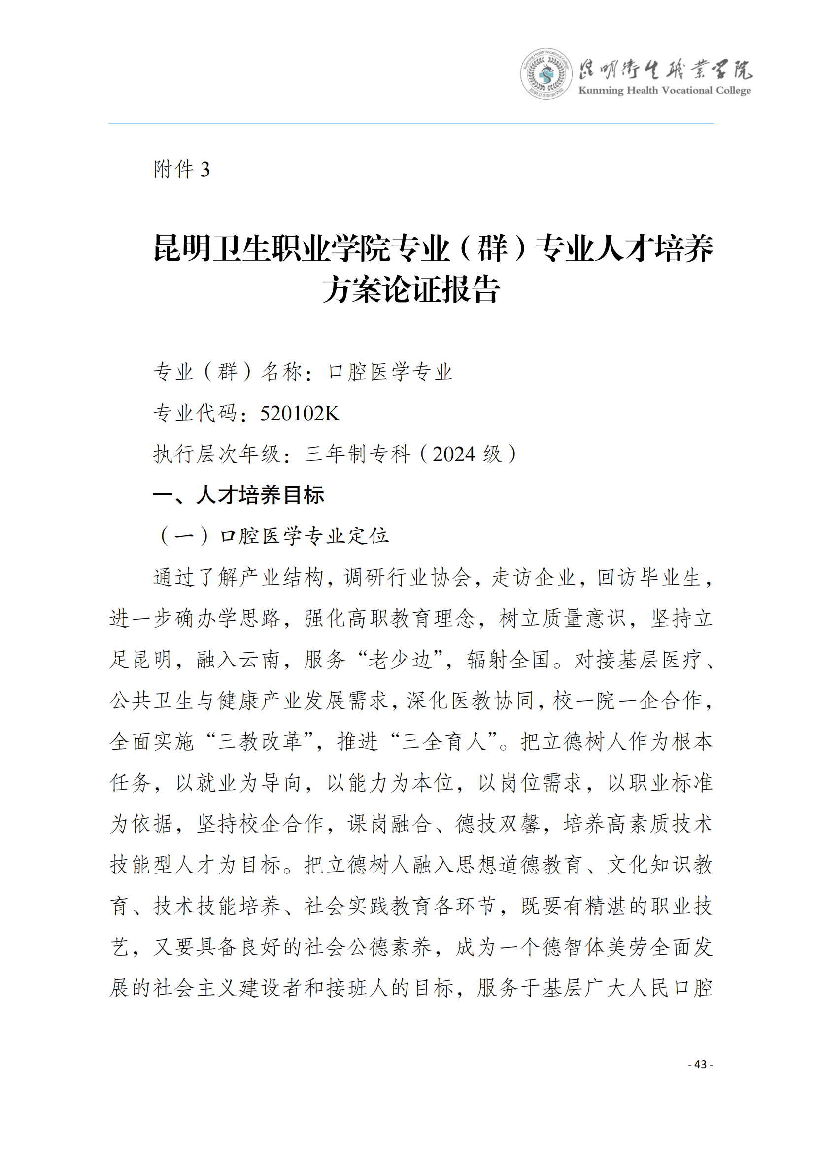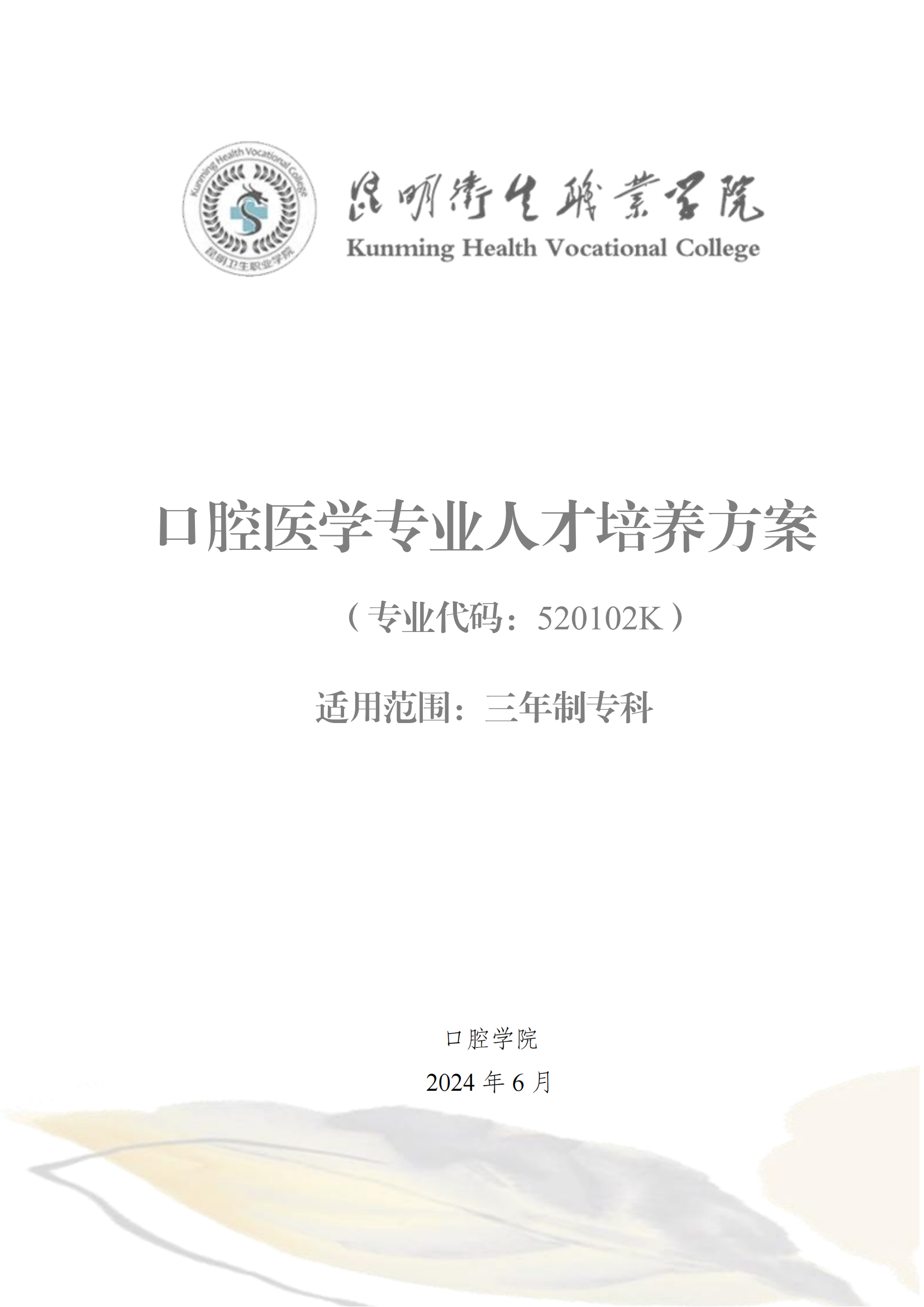 KY开元集团官网入口2024版三年制专科口腔医学专业人才培养方案