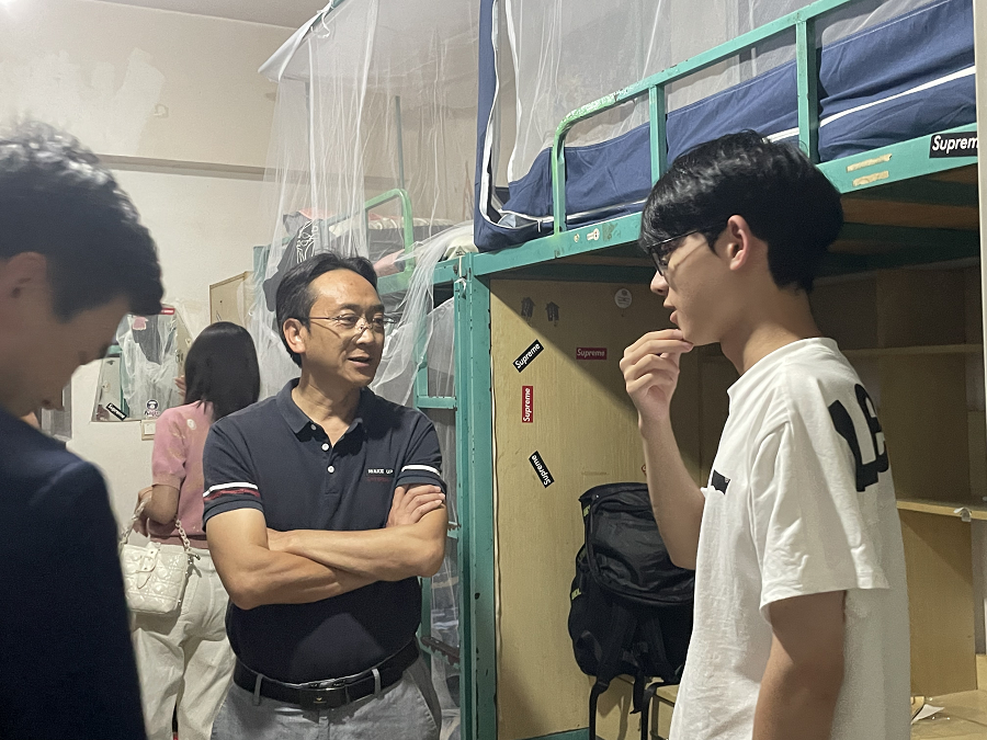 为深入了解2025级新生入住情况,帮助新生快速适应校园生活,8月30日晚,口腔学院直属党支部书记骆毅、口腔学院院长虎志辉、副院长张晓刚及学生管理负责人陈振军带领各级领导成员及全体辅导员,分别前往男生宿舍2栋与女生宿舍7栋,开展新生宿舍走访慰问工作。