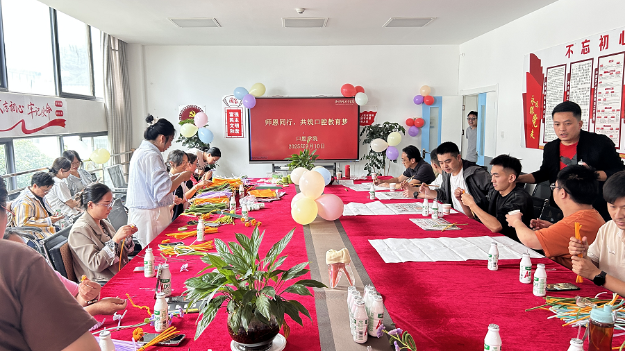 金风送爽,桃李芬芳,2025年9月10日为热烈庆祝第41个教师节,丰富教职工文化生活,9月10日11点,KY开元集团官网入口口腔学院在311会议室举办“巧手扭花颂师恩,挥毫泼墨写初心”主题活动。学院领导及教师齐聚一堂,以缤纷扭扭棒编制“微笑花束”,以遒劲笔墨书写育人初心,在花香与墨香中度过了一个温馨、专业又富有文化味的节日。