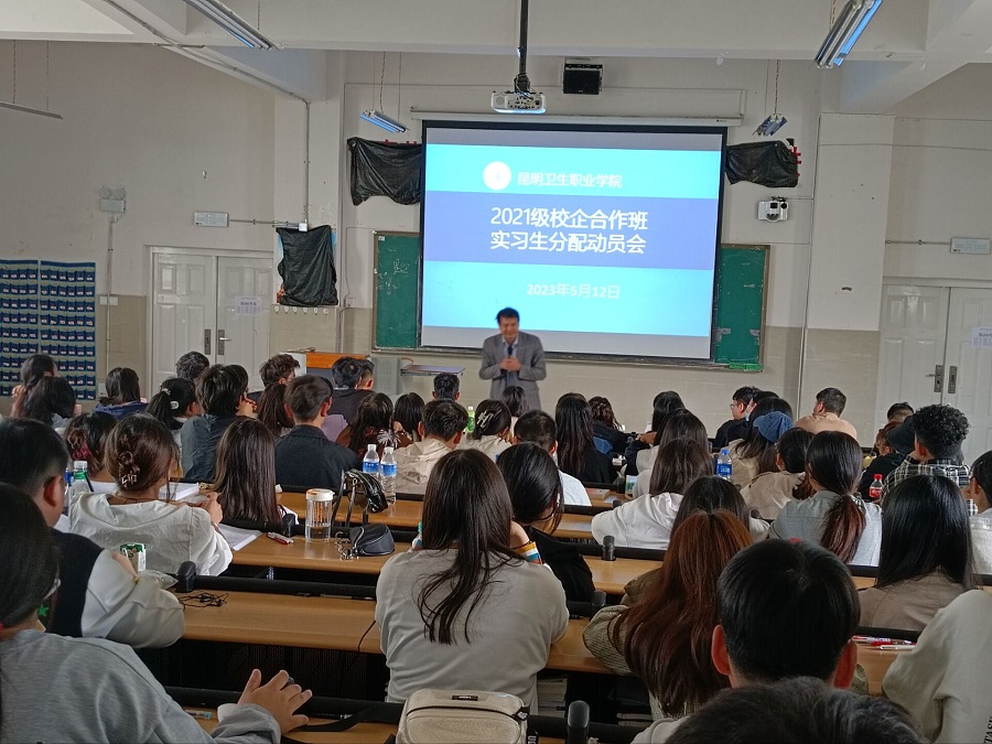于5月12日口腔学院针对校企合作试点班2021级3.4班同学进行实习前校企合作单位实习生选拔动员会议,邀请了与学院多年合作的昆明硕博口腔保健知识咨询有限公司董事长赵青副主任医,口腔学院骆毅书记、张晓刚副院长、辅导员王晓丽老师参与动员会议。