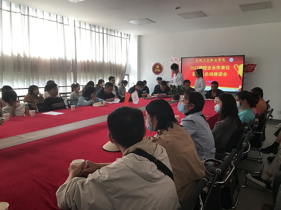 口腔学院始终坚持校企合作,课岗融合,共育人才,口腔学院于2020年制定了“2+1+1”校企合作共育人才培养模式(学生在校2年由校企合作单位负责主干课教学+1年的校企合作单位实习+毕业后1年校企双方帮扶学生执业证备考),经过在2020级高职口腔7班、8班60余名学生中开展首批校企合作临床实习教学改革试点,到2023年4月份已顺利完成了为期10个月的临床实习改革试点工作。口腔学院于4月14日组织召开参与试点的60余名学生座谈会,学院实习处处长颜慧林,学院教务处督导陆建华参会,会议由张晓刚主持,口腔学院领导班子参加学生实习座谈会,聆听实习生实习效果反馈会。