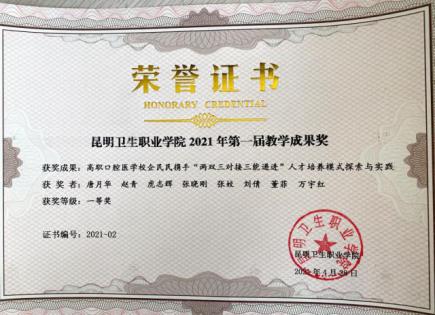 学院坚持校企合作,医教融合,共育人才,与昆明硕博口腔保健知识咨询管理有限公司合作,聘任该公司董事长为口腔学院名誉院长,同时聘请三名行业专家作为学科带头人,不断深化口腔医学人才培养模式改革,校企合作探索出了课岗融合、“三能”递进的人才培养模式。
